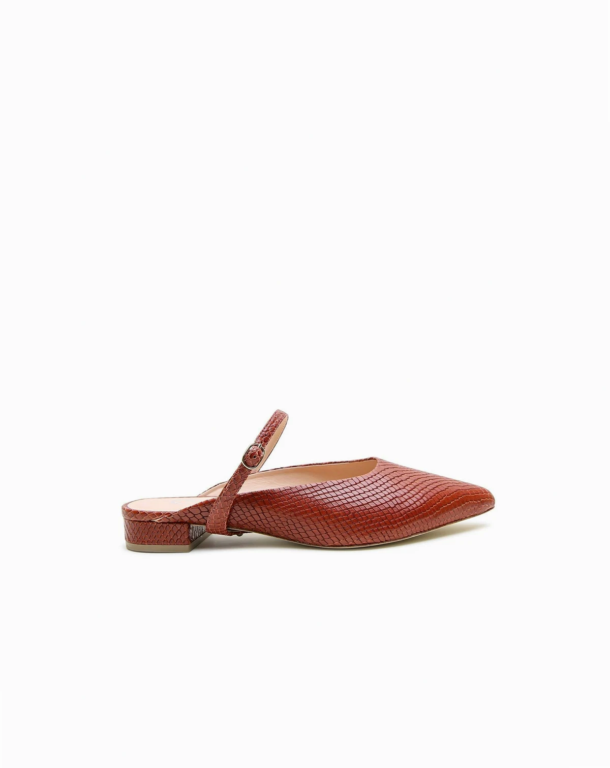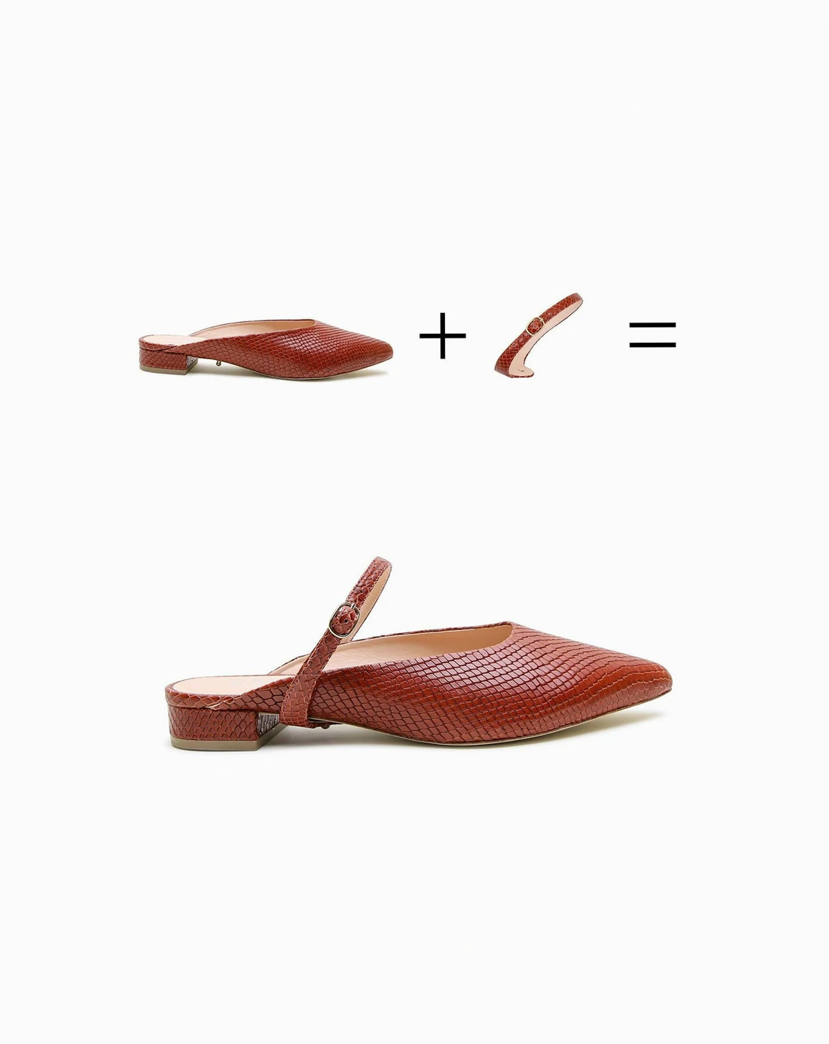 Swap your sneakers for these sophisticated slides for work or a night out. The design features soft leather that may feel snug at first but softens and molds to your foot over time. If you re between sizes, we recommend sizing up for the best fit. Ideal for those who prefer flats over heels, they offer all day comfort with a cushioned insole and extended pointed toe the rich brown snake print adds a touch of luxury, while the detachable twiggy strap, inspired by style icon Lesley 'Twiggy' Lawson, lets you mix and match with other Alterre straps (sold separately) for endless styling options.