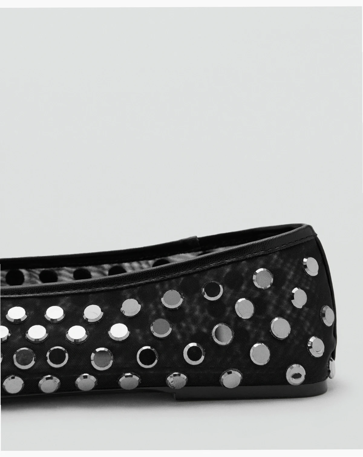 Channel subtle edge with the Mesh Ballet Flats With Studs from Mango. Made from mesh fabric, these slip-on flats feature a round toe and stud embellishments.