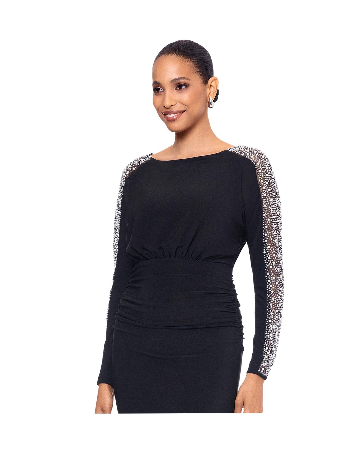 Shell: 95% polyester, 5% spandex; lining & combo: 100% polyester; IMPORTANT NOTE: This item arrives with a return tag attached and instructions for removal. Once the tag is removed from the dress, this item cannot be returned.