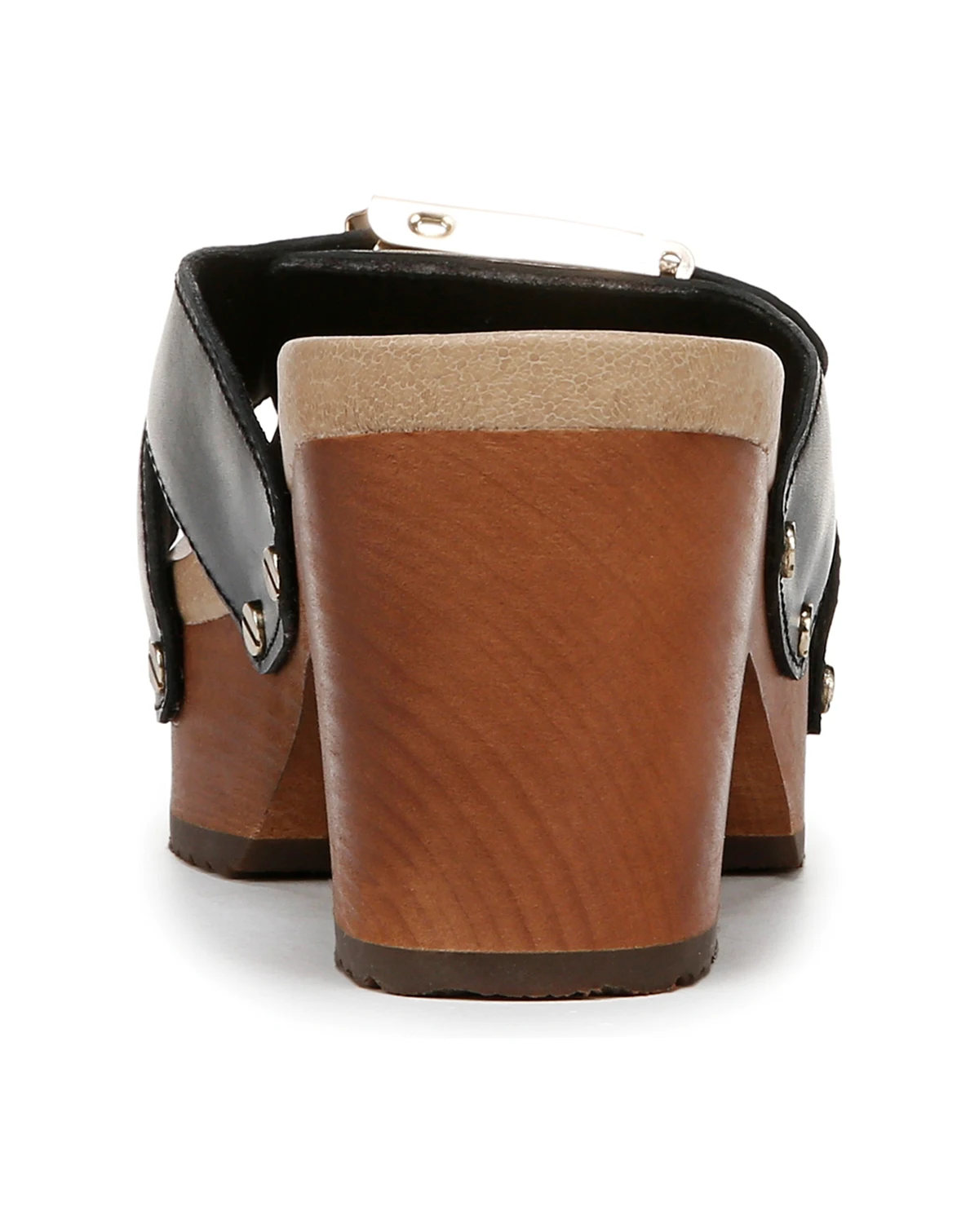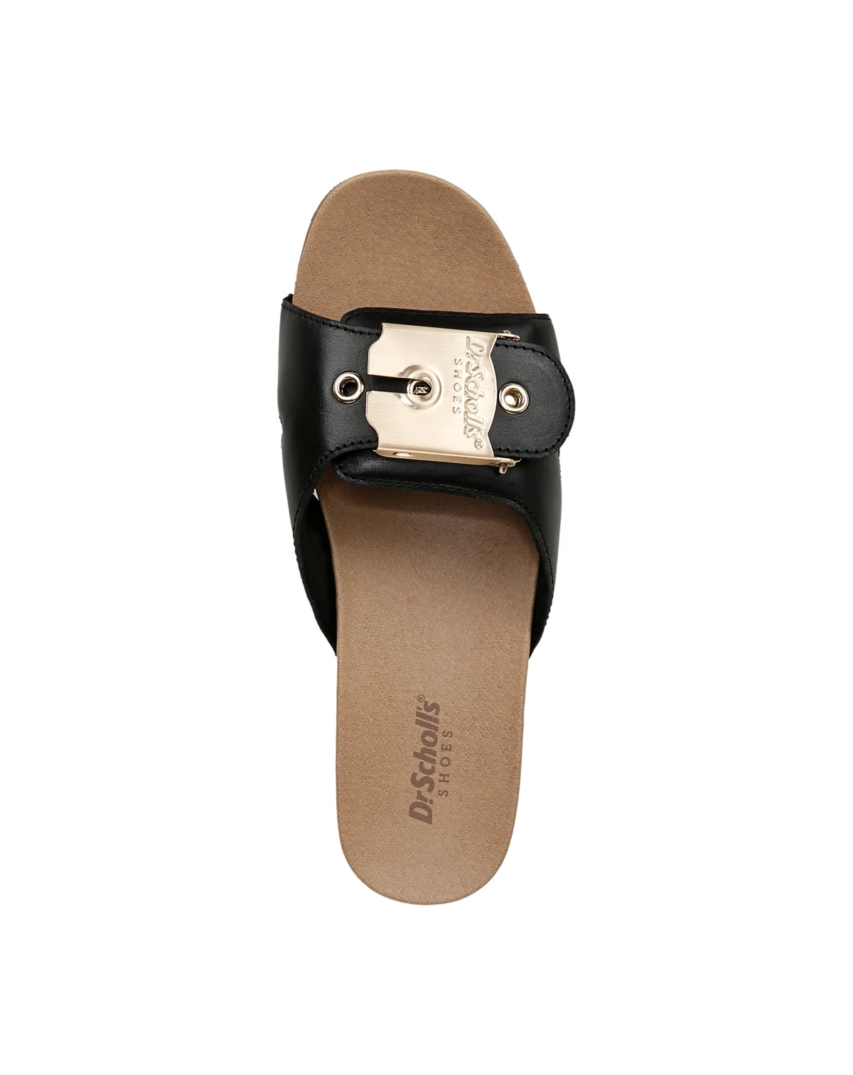 Retro slides for women with a wooden clog heel and a thick molded footbed for extra comfort. CRAFTED: Linings and artisanal wood sole made from natural beechwood certified by the Forest Stewardship Council. MATERIALS: Synthetic upper or leather responsibly sourced through Leather Working Group-certified tanneries. FIT: Slip-on fit with iconic adjustable metallic buckle. FEELS: Insole Technology with anatomical cushioning, comfort, and arch support. STYLE: Vintage heeled clog sandal with oversized iconic Dr. Scholl's signature buckle, metallic stud details, open round toe, and 2-inch platform heel. 1 SHOE. 1 TREE. ALL THE FEELS: With your purchase of this shoe, we'll donate one tree to Trees for the Future to offset carbon emissions and help impoverished families plant trees for a better life. Inspired by our iconic Original Sandal, these must-have platform sandals have maximum comfort for vacay, road trips, festivals, and everywhere.