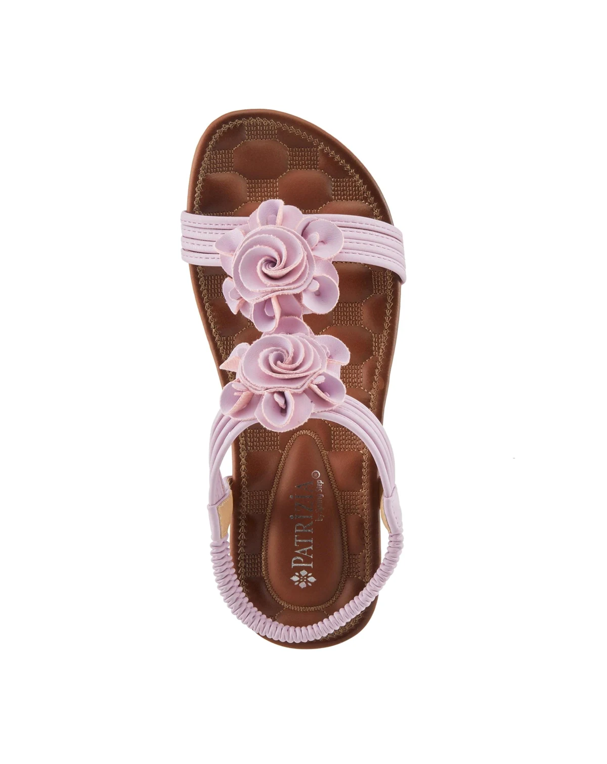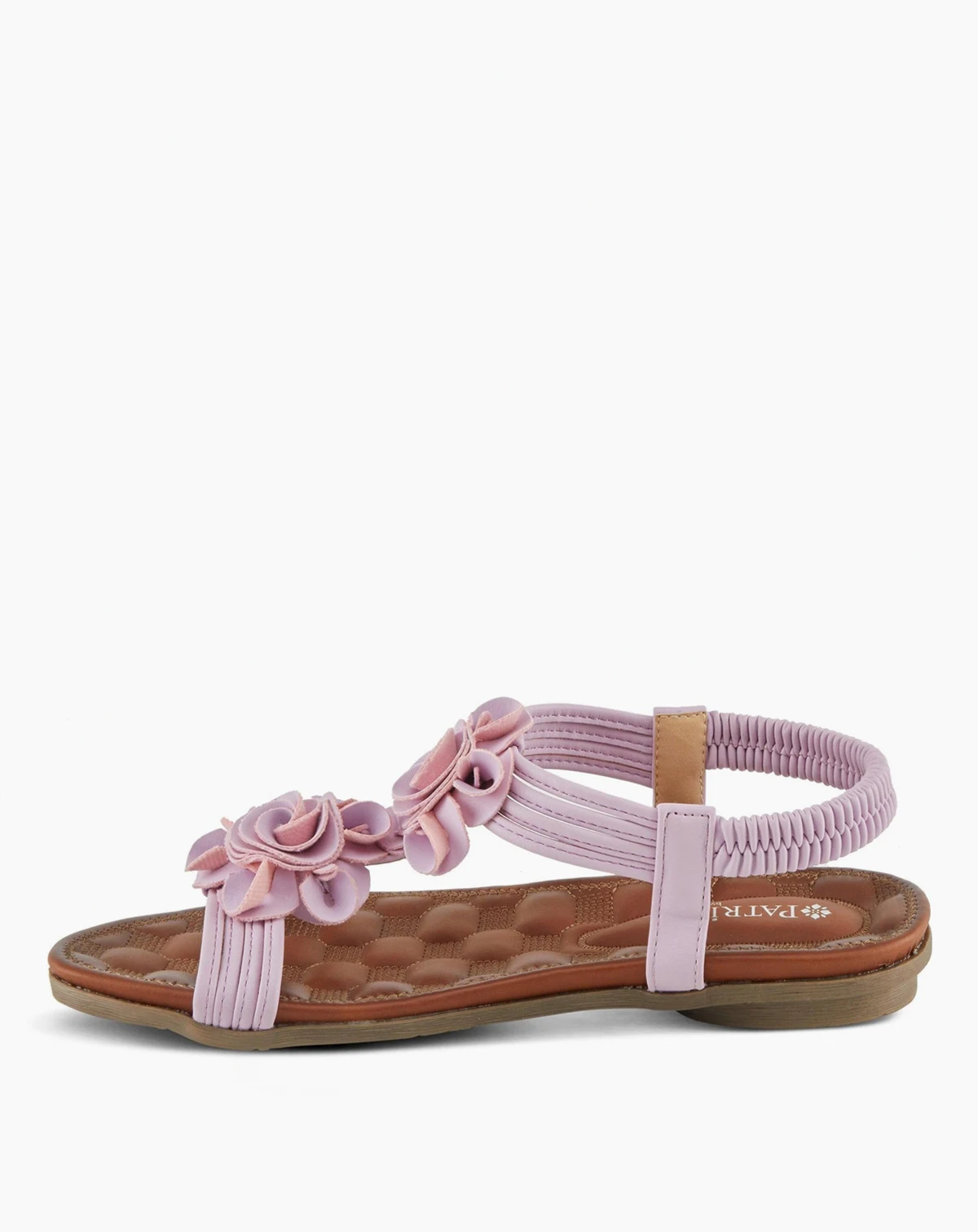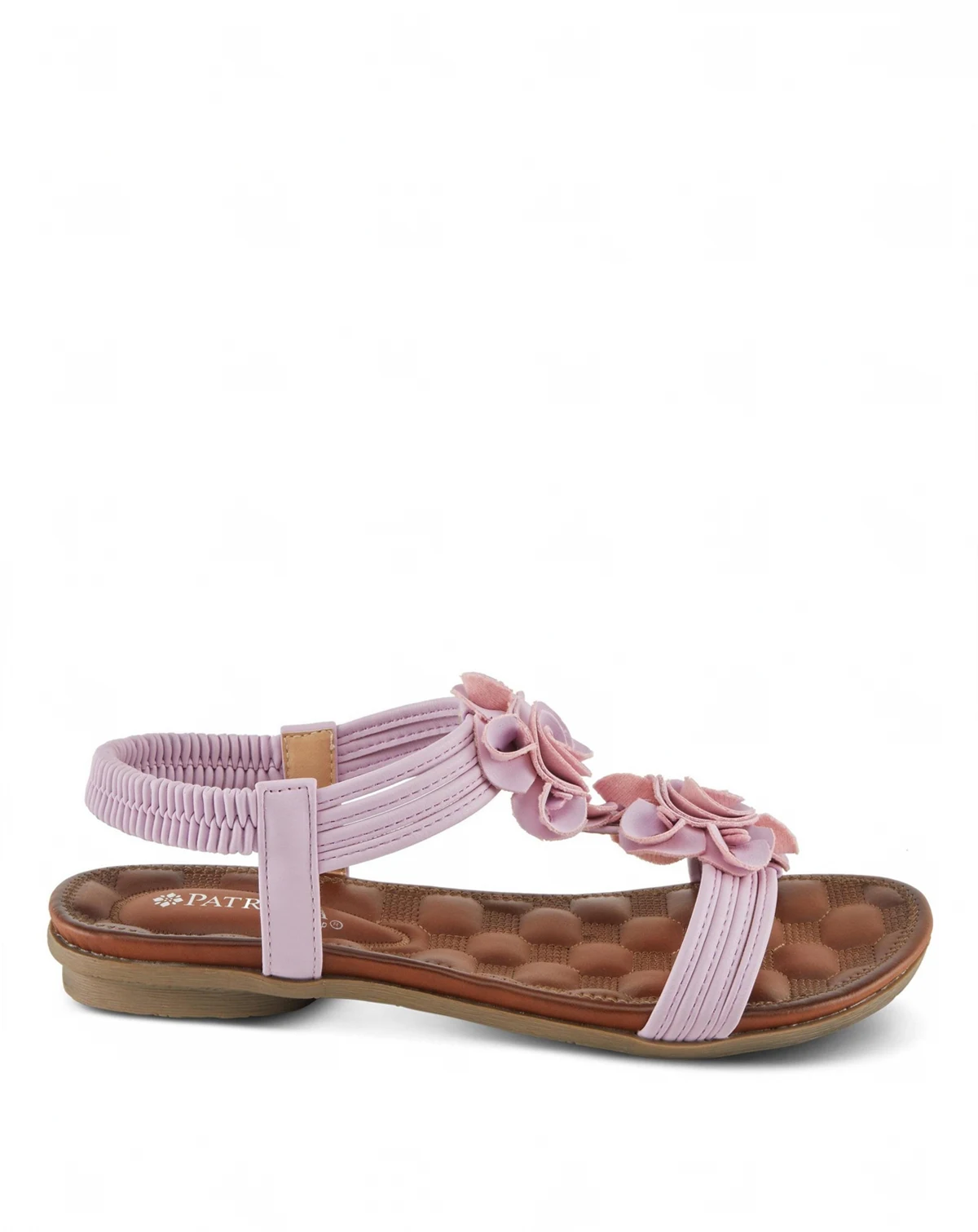 Step into effortless comfort with the Patrizia NECTARINE floral T-strap sandal. Adorned with delicate nature-inspired flowers, this sandal brings a whimsical touch to your warm-weather wardrobe. The elasticized back strap ensures a snug yet flexible fit, while the quilted padded footbed provides cloud-like cushioning for all-day wear. Crafted with high-quality materials and a subtle almond toe shape, this sandal is the perfect fusion of fashion, function, and nice design.