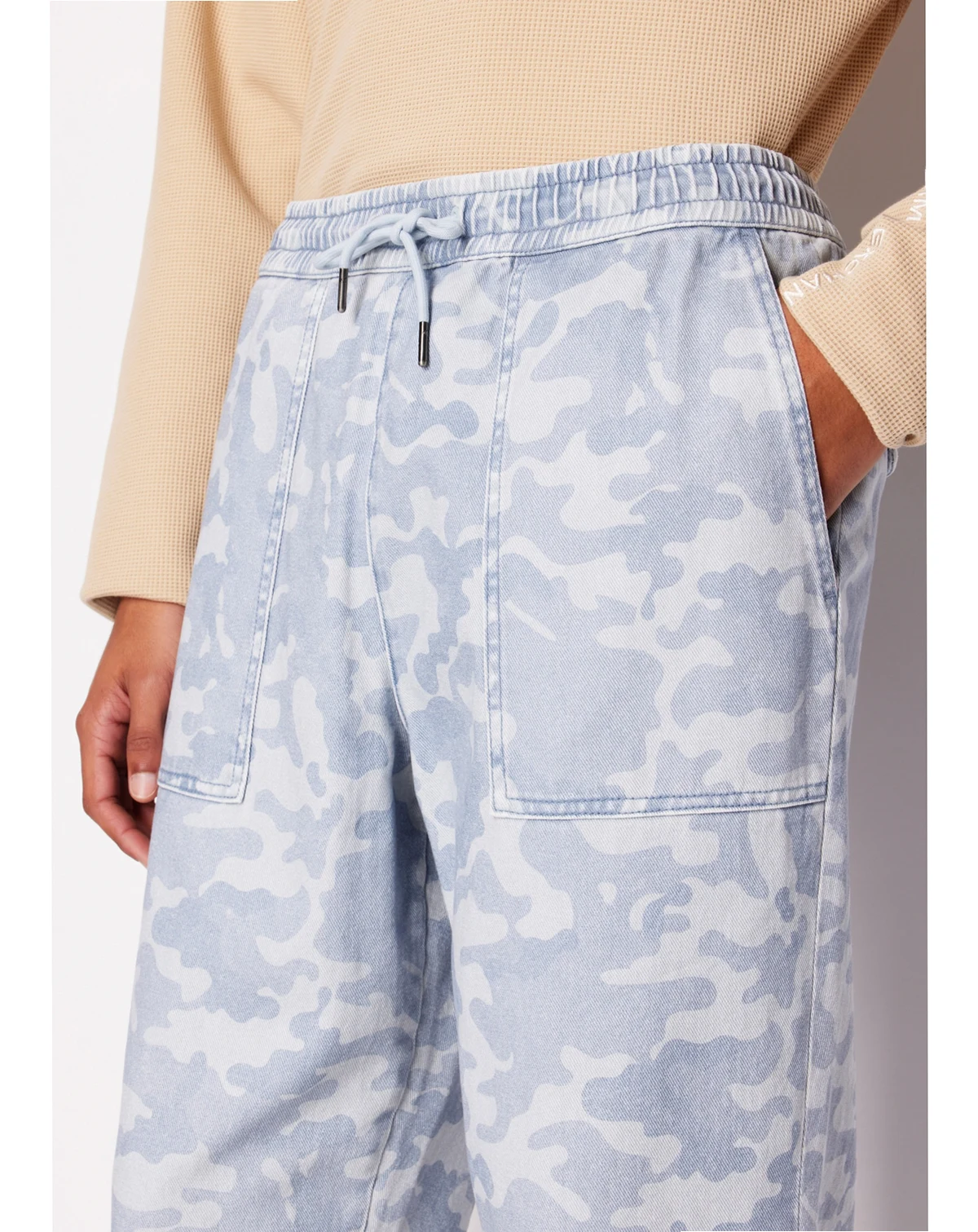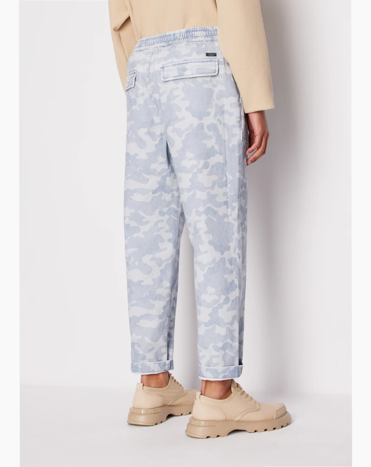 Take your street-ready look to the next level with the tonal camo pattern of these soft drawstring pants from A|X Armani Exchange.