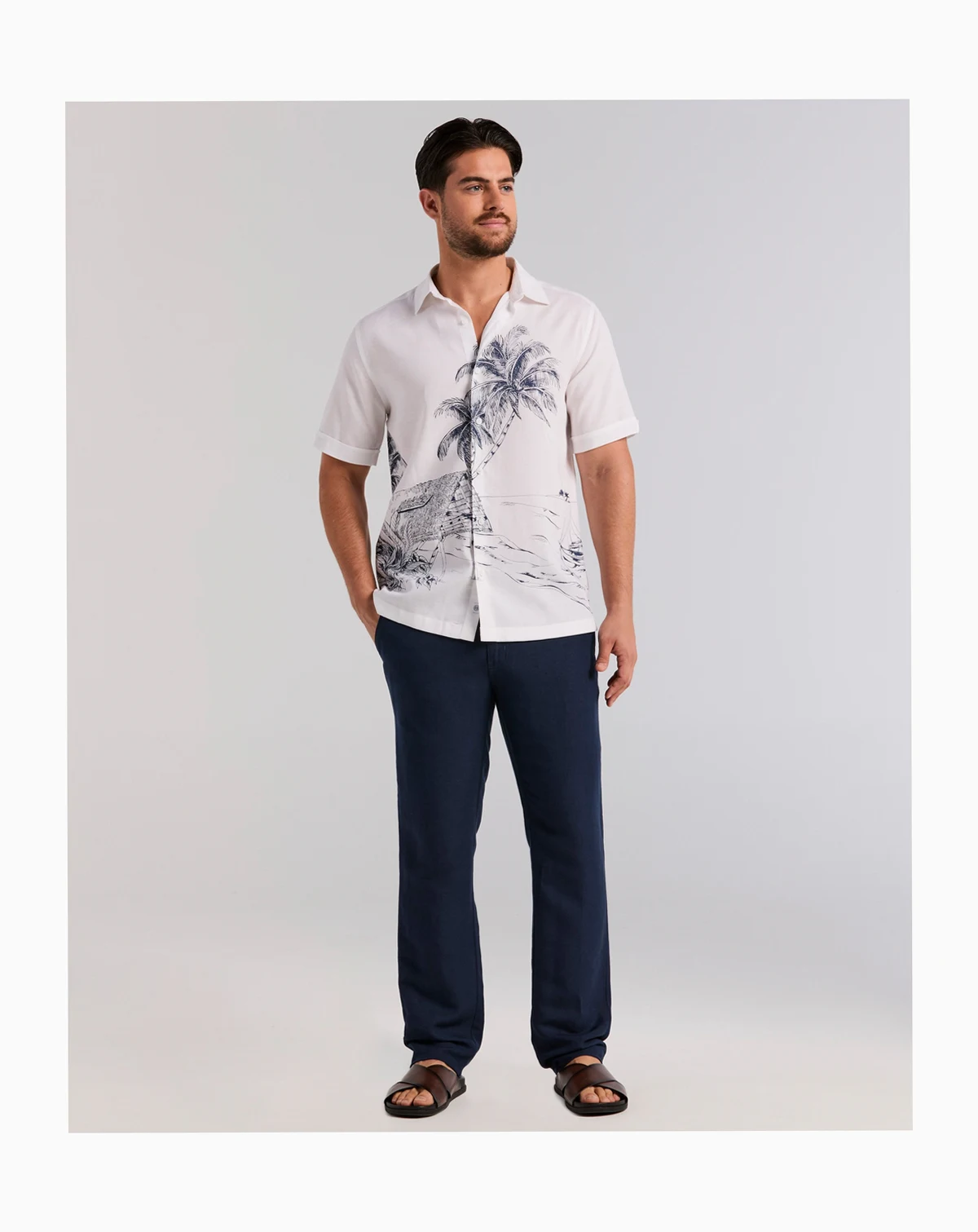 Step into tropical ease with this Cubavera short-sleeve shirt, featuring a vibrant island scenic print and soft drape. Plain-weave fabrication and crisp point collar offer refined texture and effortless casual style.