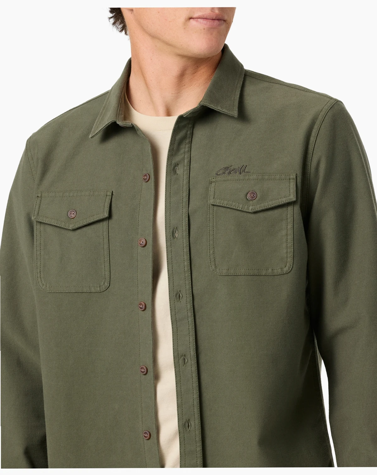 Our solid color overshirt is a versatile layer for any season. Made from a comfortable polyester-cotton blend with a touch of stretch, it features a standard fit and classic details.