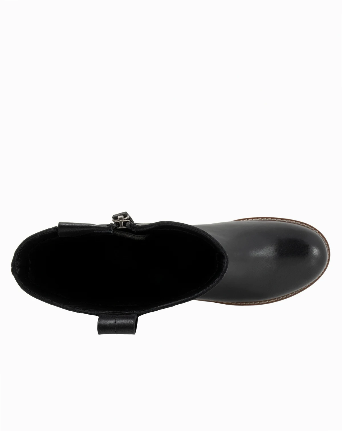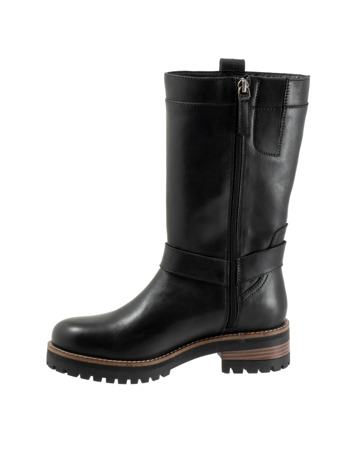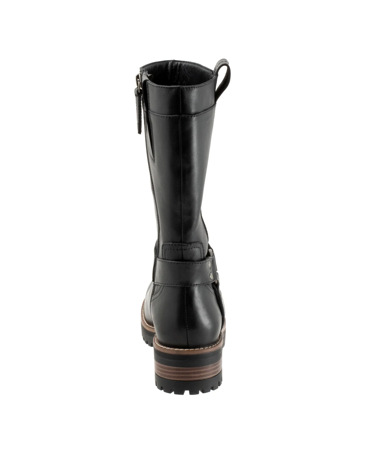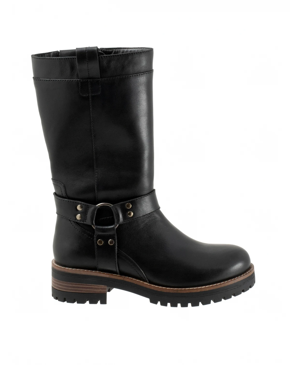 Step into rugged elegance with the Softwalk Edgewater boot. Perfect for transitional weather or adding a bold statement to your outfit, this mid-calf boot combines style, comfort, and practicality. Its inside zipper allows for effortless wear, while the durable design ensures it can keep up with your every adventure. Crafted with premium leather, the Edgewater features a sleek silhouette and a sturdy lug sole for enhanced traction. Subtle details like the harness accent and contrast stitching make it a versatile yet standout addition to any wardrobe. Pair it with your favorite jeans or dresses for an elevated casual look.