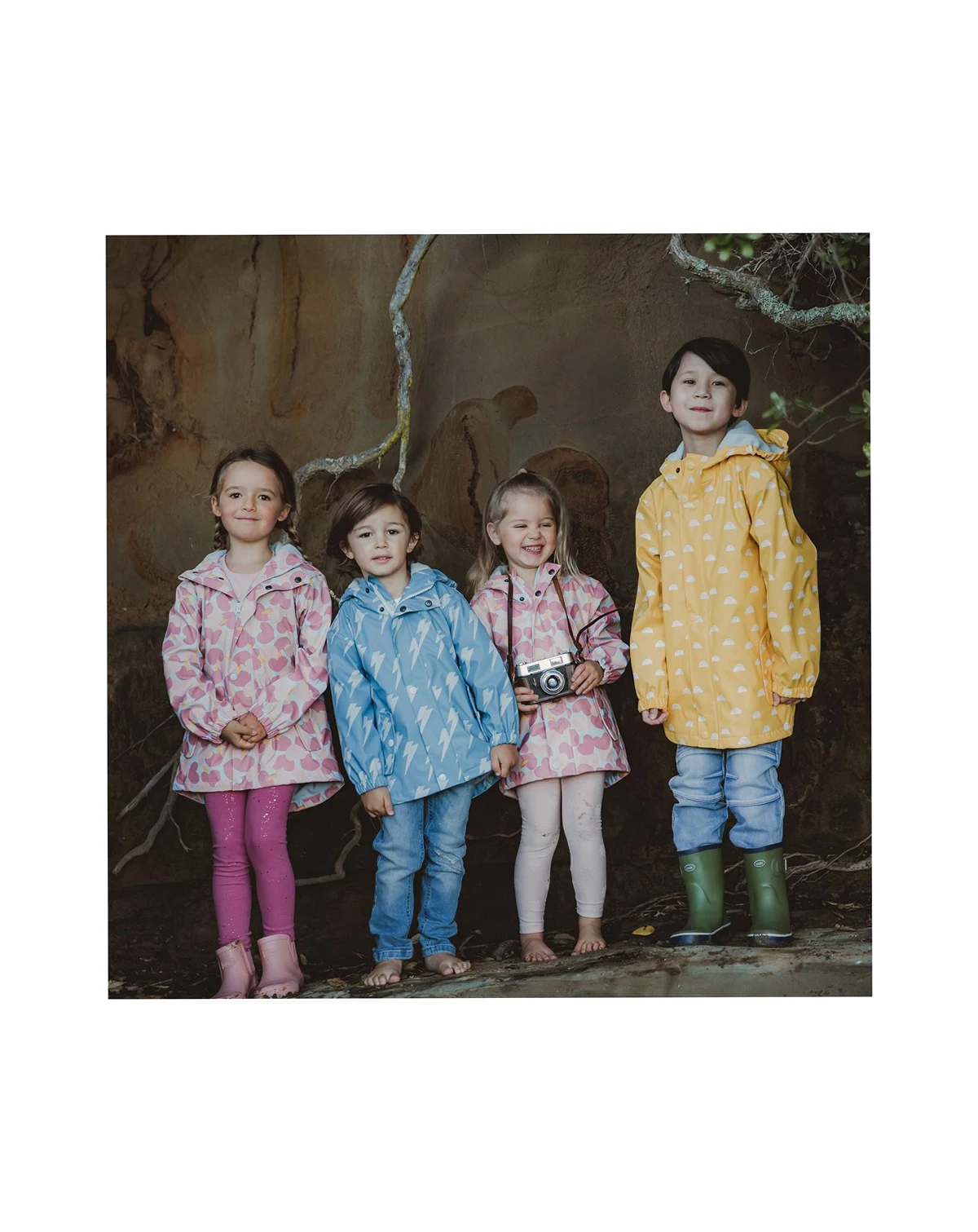 Outer : 100% PU / Backing : 100% Recycled Polyester; 100% recycled polyester outer the shell of our raincoats are made from PET bottles saved from landfill. On average 14 bottles are used to make one raincoat; 100% Polyester micro-fleece lining. Fully Waterproof - water column pressure of 8000mm = very