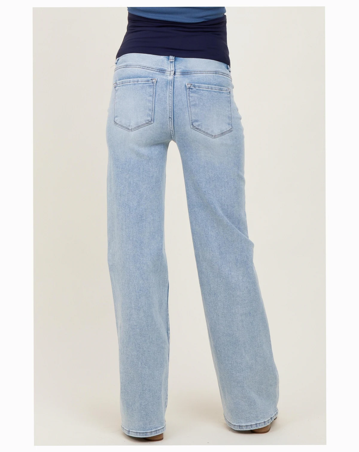 Step into ultimate comfort and classic 90 s style with our High Rise Wide Leg Maternity Jeans. Designed to flatter your growing bump, these jeans feature a supportive panel, a trendy wide leg cut, and a high rise fit that sits perfectly on your hips. Crafted from soft, stretchy denim that moves with you, they re perfect for everyday wear—from casual outings to running errands. Dress them up or down for endless styling options as you breeze through every trimester in confidence and style. Discover your new favorite maternity jeans today!