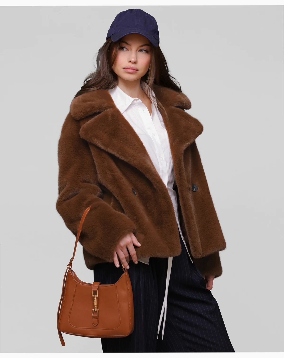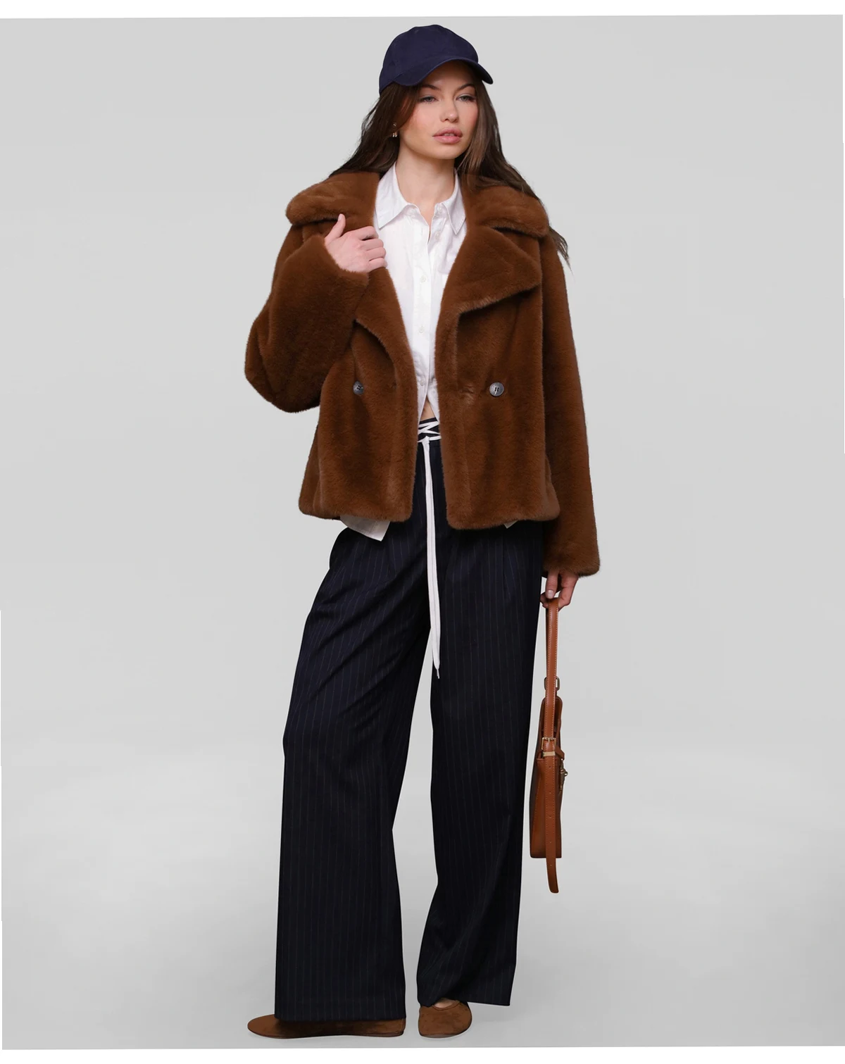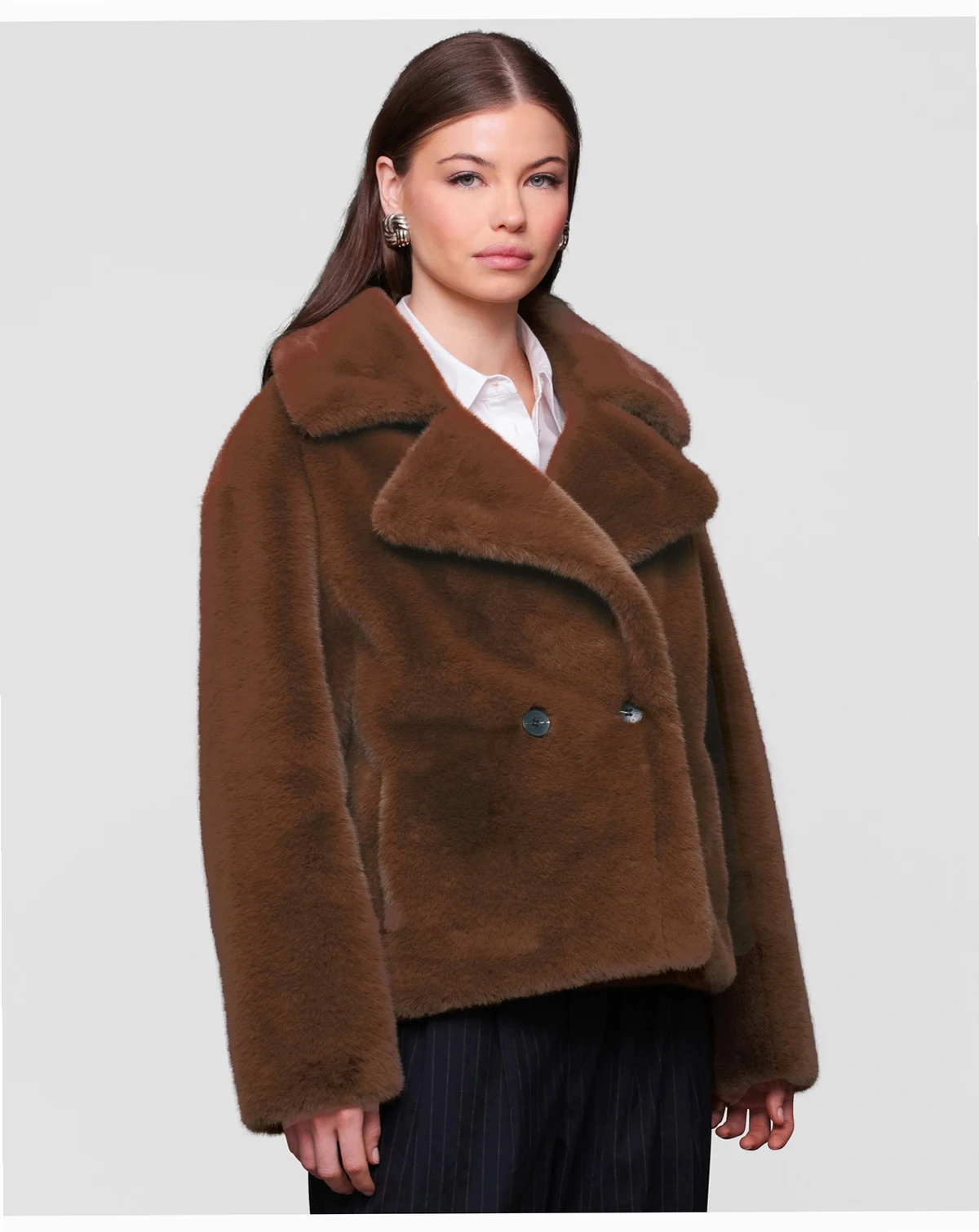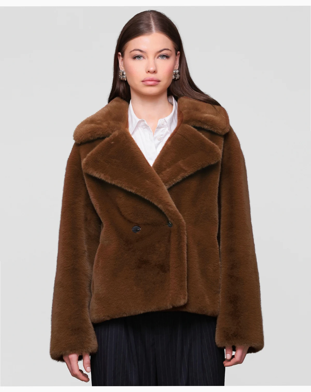 A single button closes up the front of this chic faux-fur coat from Avec Les Filles. A notched collar gives it classic polish.