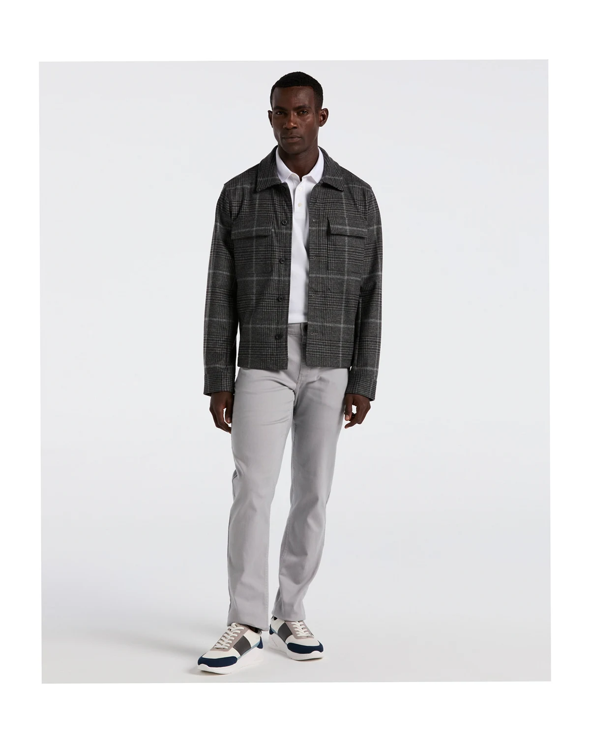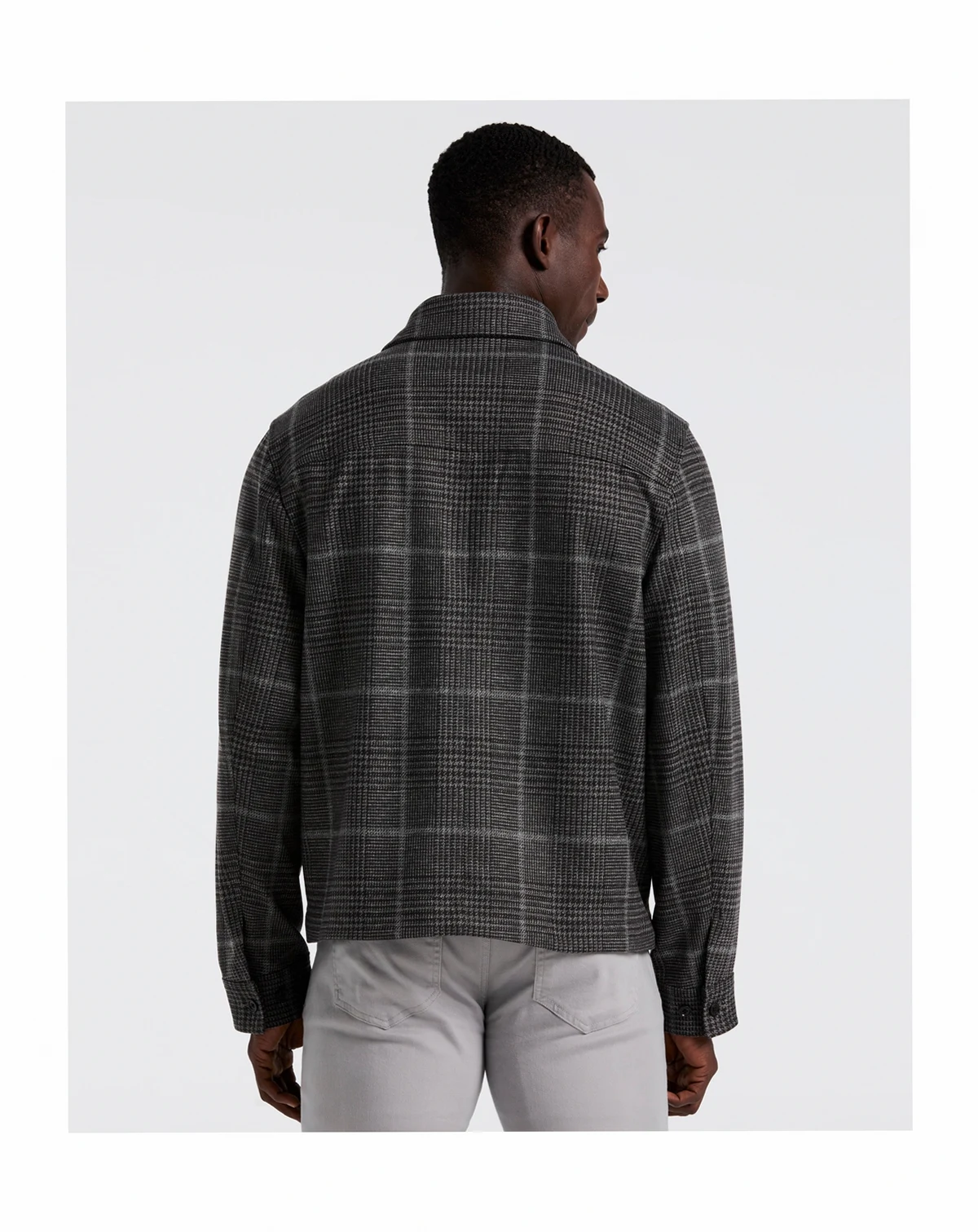 Stand out with a unique texture in this bold plaid-print knit jacket from Perry Ellis, featuring four-way stretch. A self-collar and long sleeves create a comfortable, modern silhouette that moves with you.