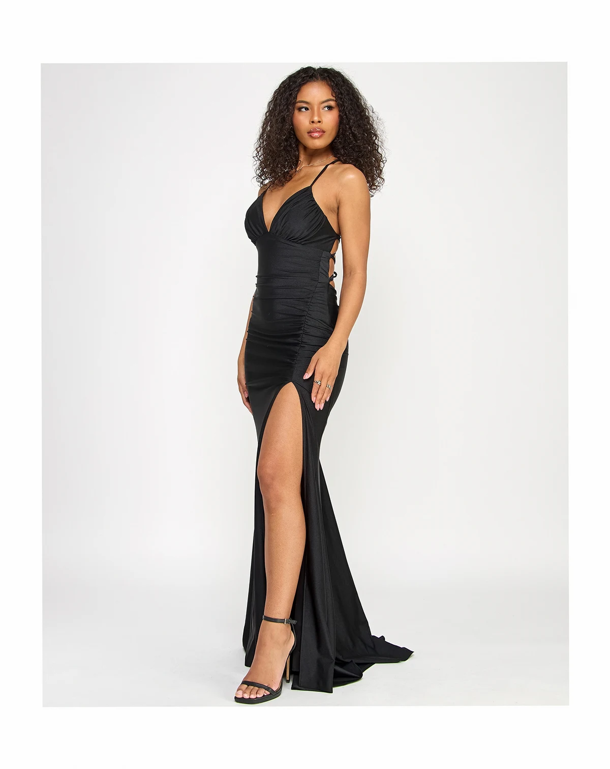 Shell: 80% nylon, 20% spandex; lining: 100% polyester; IMPORTANT NOTE: This item arrives with a return tag attached and instructions for removal. Once the tag is removed from the dress, this item cannot be returned.
