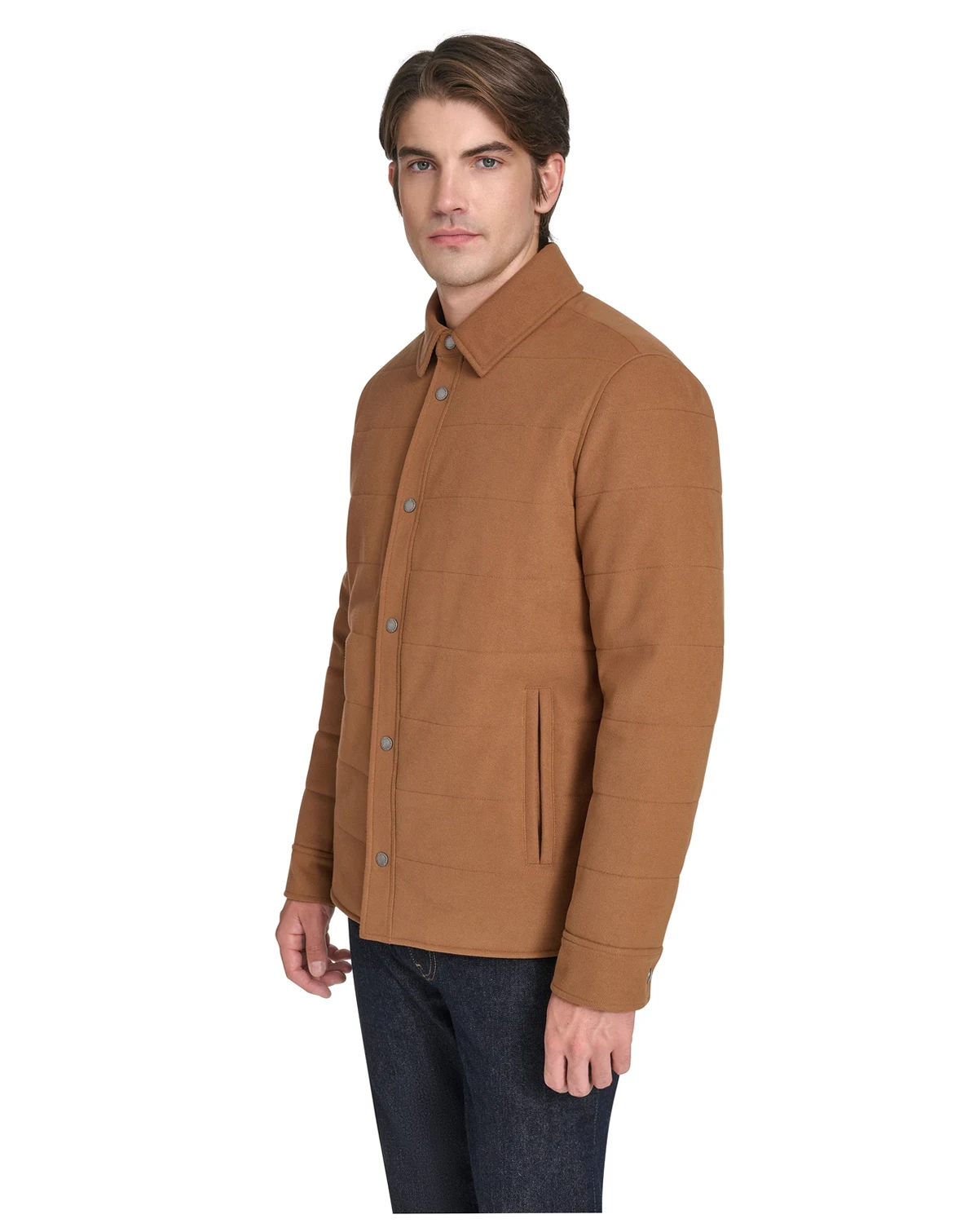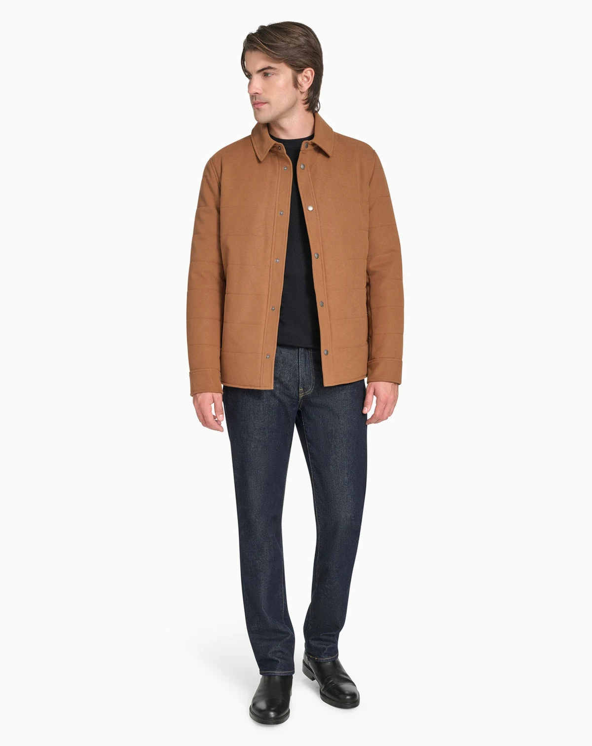 The Cole Haan Men's Stretch Twill Shirt Jacket blends the ease of a shirt with the structure of a jacket. Crafted from soft, flexible twill, it moves with you—whether layered over your favorite tee or dressed up for a night out. With clean lines and a tailored fit, it's the perfect balance of comfort and confidence. A modern essential made to elevate every moment.