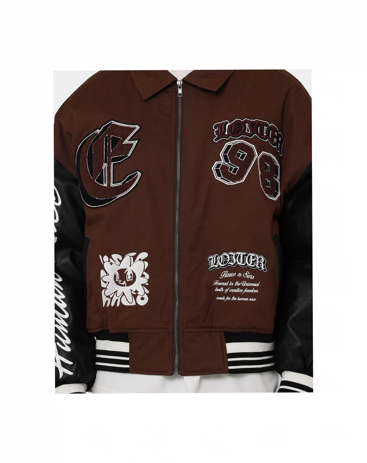 Take it back to the college days with the Ethereal Varsity Jacket from Loiter, the brand made for the human race. Decked out in embroidered brand patches and details, this jacket features contrast sleeves with a leather feel to keep your style on its toes.