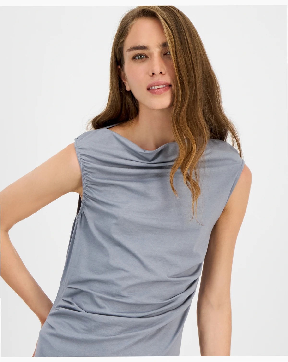 A draped design and asymmetric neck lends a timelessly sophisticated feel to this instantly chic 'fit by BOSS Orange.