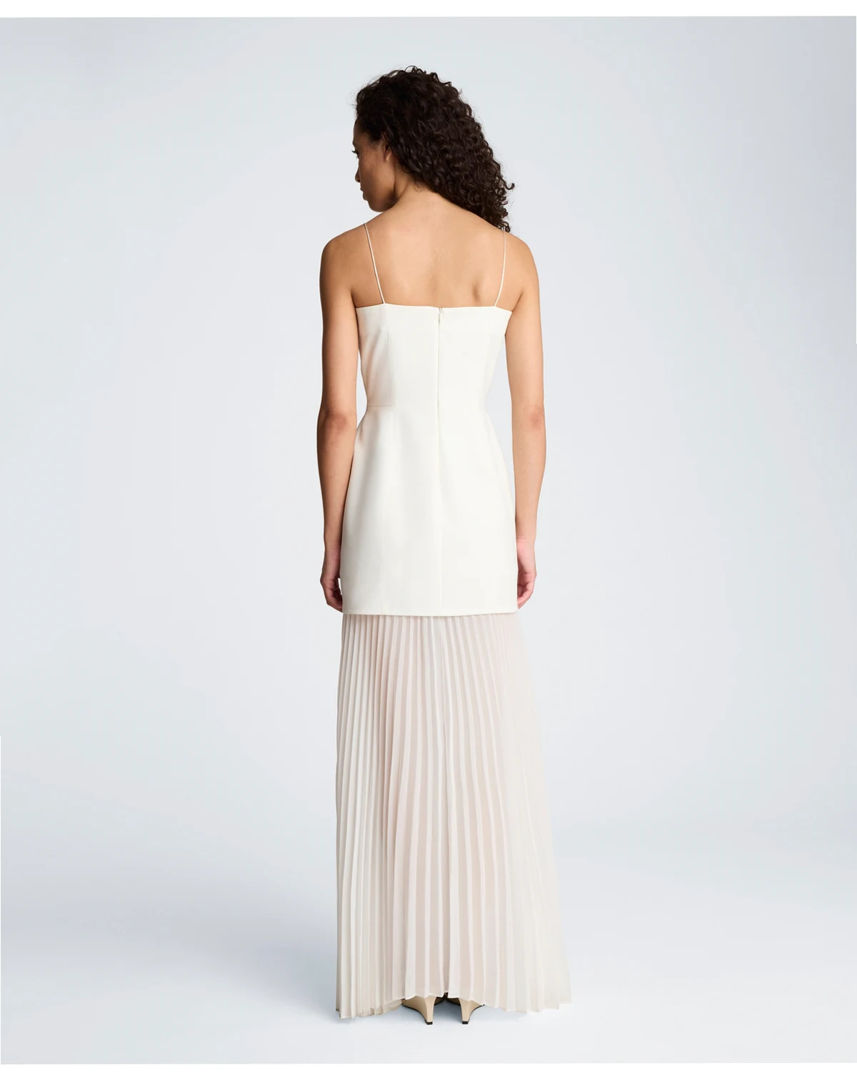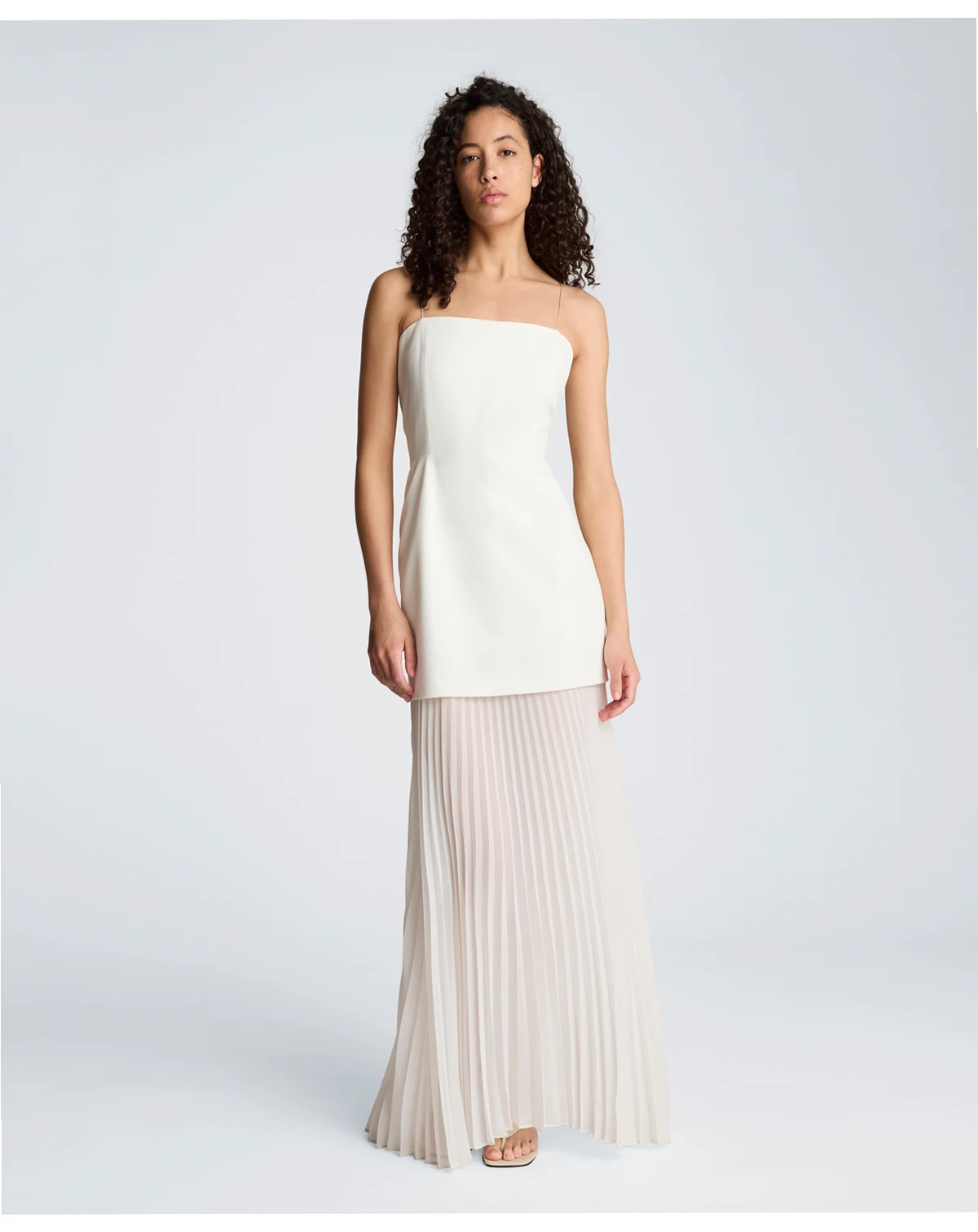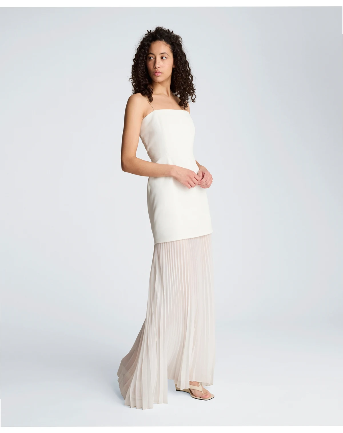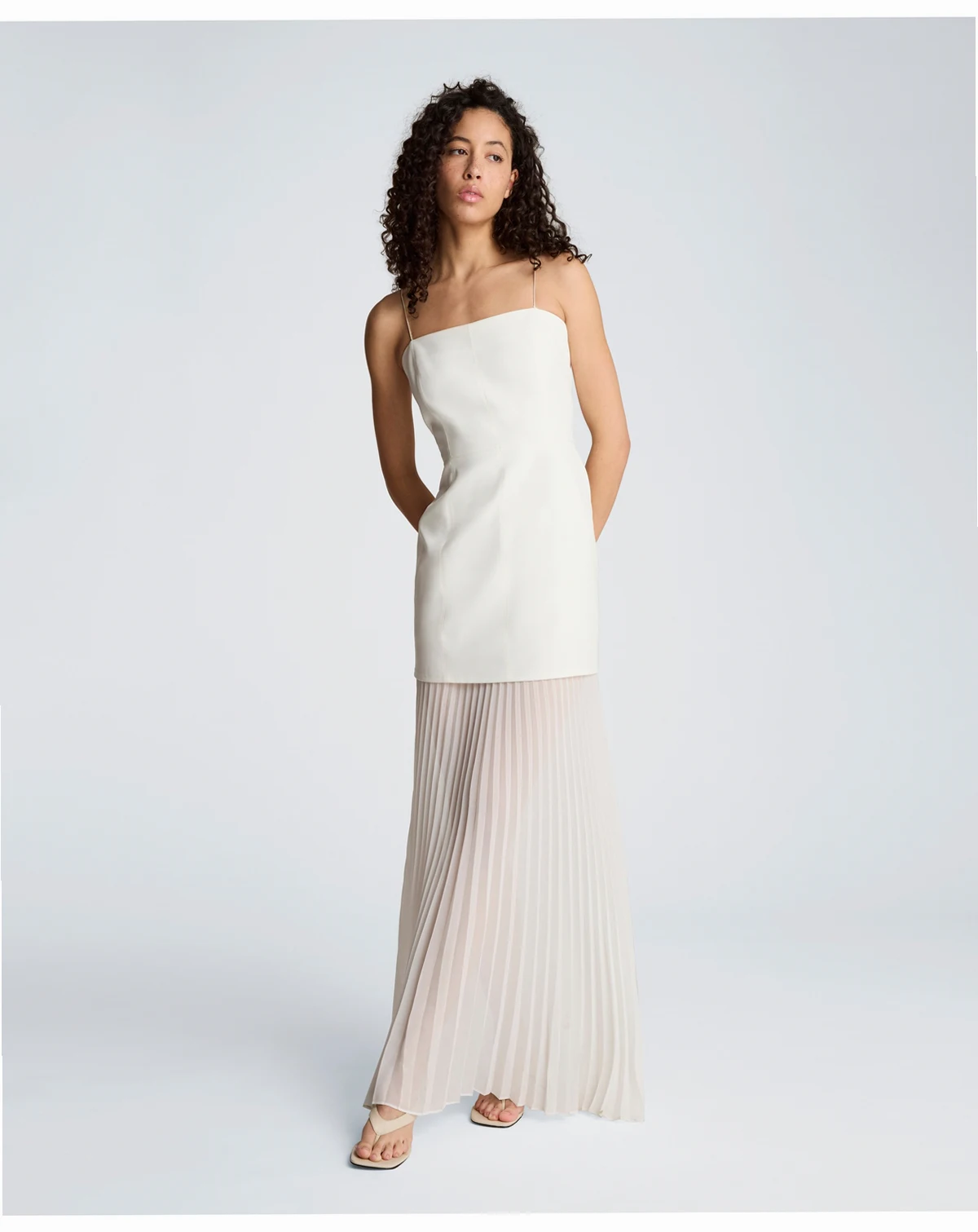 Exude contemporary charm in this Kenneth Cole dress, featuring spaghetti straps and a back hook with zipper closure. Pleated detailing adds texture and a graceful, flowing silhouette.