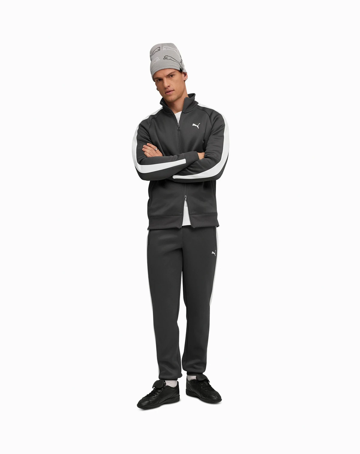 Combining a classic silhouette with modern touches, these pants from Puma feature a regular-fit with an elastic waistband and ribbed cuffs for comfort. Embroidered logos and zipped side pockets add sporty style.