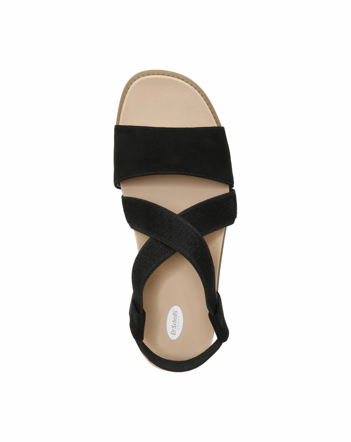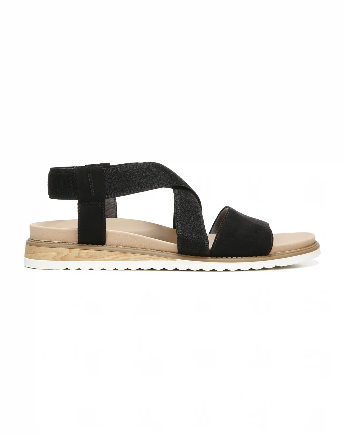 A breezy and strappy sandal with vacay vibes. CRAFTED: Soft linings made from 100% recycled bottles. MATERIALS: Fabric or microfiber made from 100% recycled plastic bottles. FIT: Slip-on fit with stretch gore straps for easy on/off. COMFORT: Insole Technology with anatomical cushioning, comfort and support. MOVEMENT: Lightweight, flexible construction moves with you. STYLE: Strappy casual sandal with soft gore straps and contoured footbed with a slim 1.25-inch faux wood wedge heel and scalloped white bottom. Plan your next getaway or live up your staycay in this strappy sandal that feels so easy.
