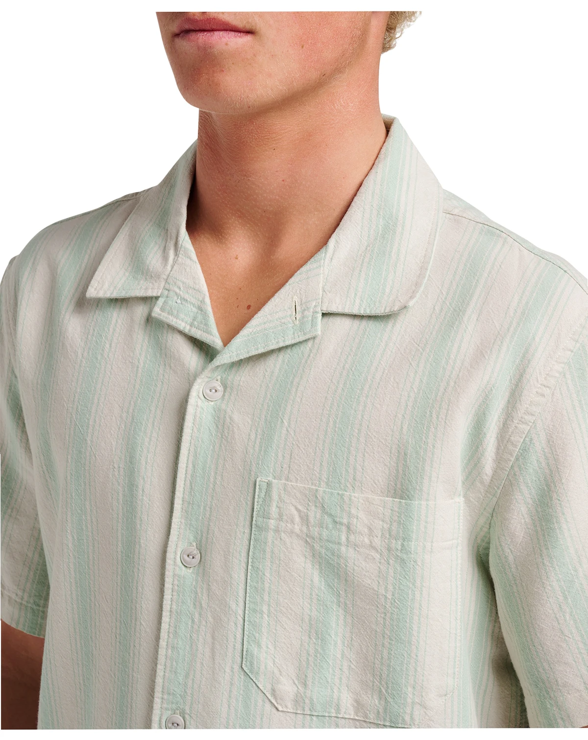 Experience comfort and style with Quiksilver's Short-Sleeve Stretch Woven Shirt, featuring a single chest pocket, and scalloped hem.