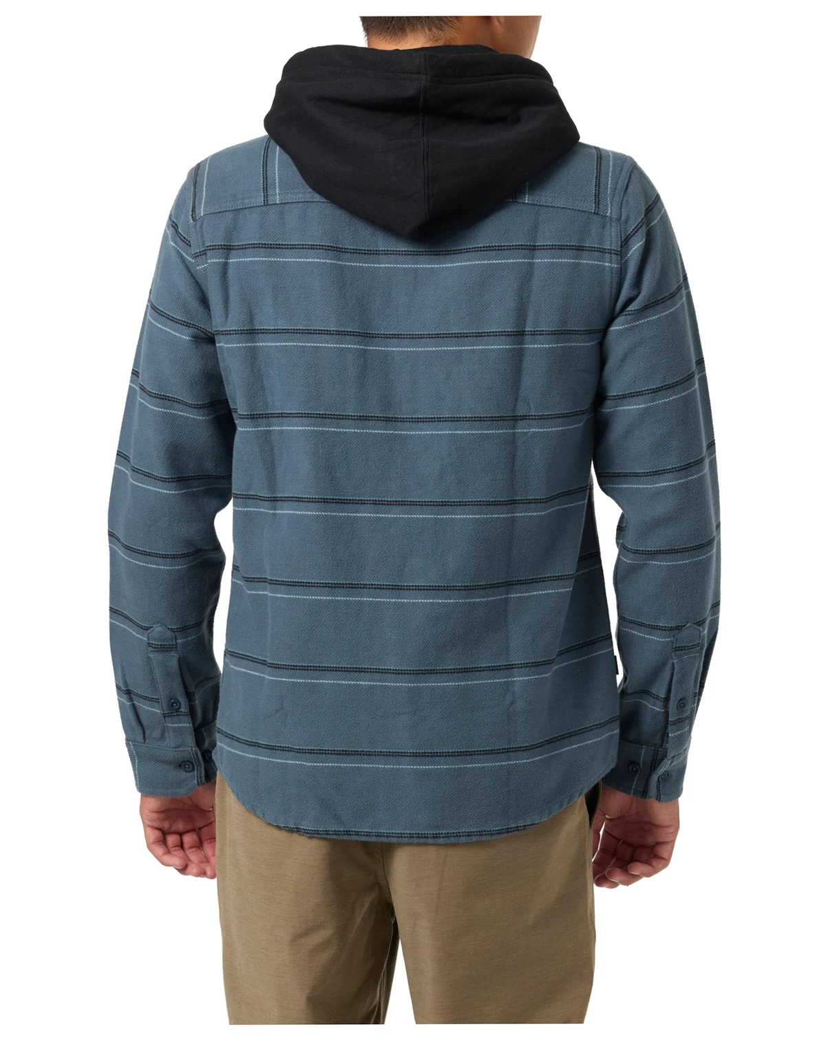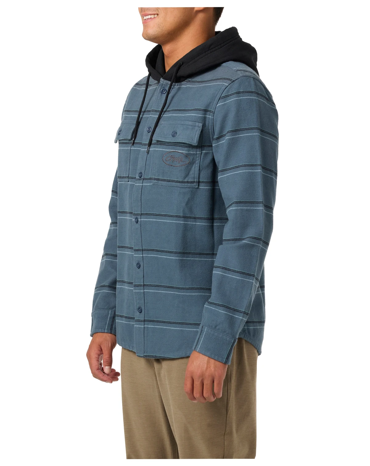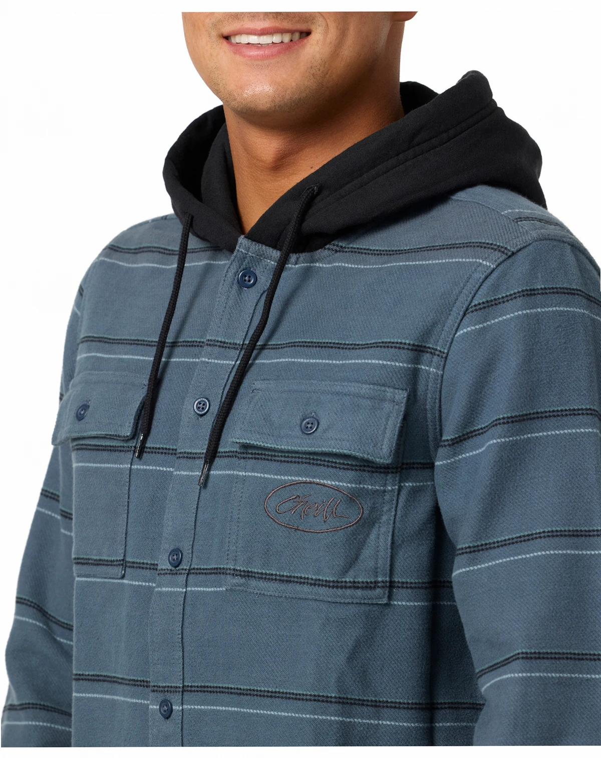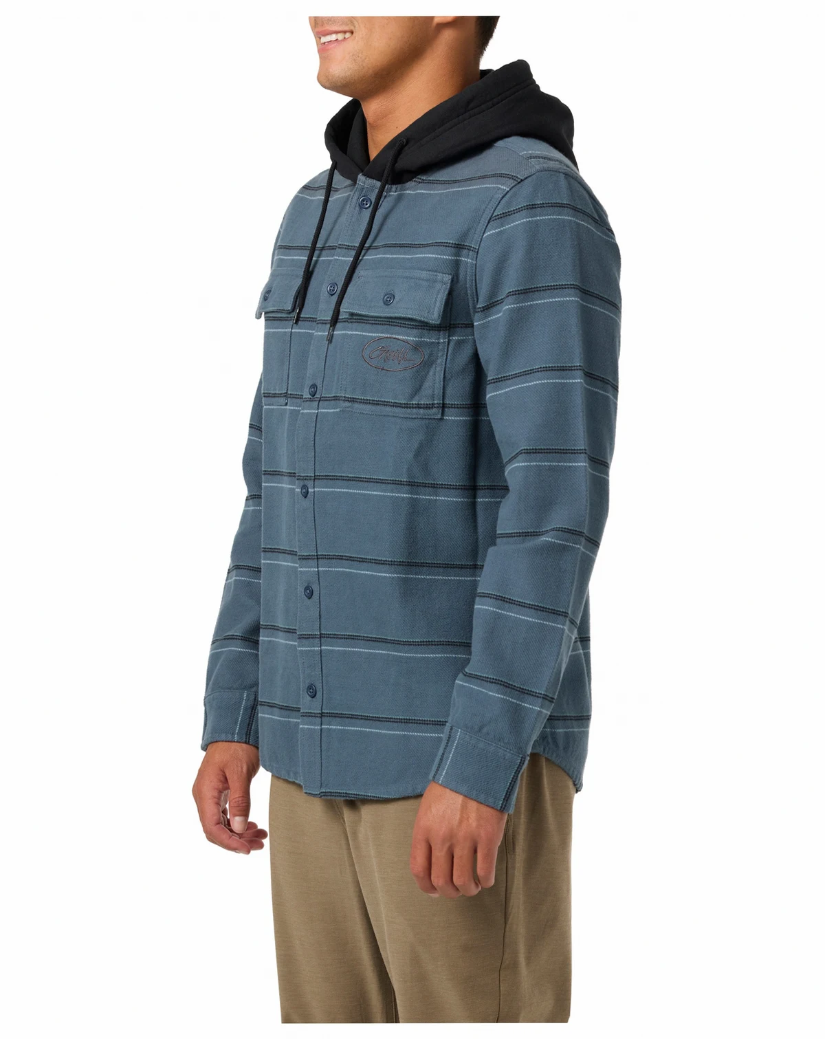 Enjoy standard-fit and warmth in this hooded flannel shirt from O'Neill. Button chest pockets with embroidery and adjustable cuffs provide a functional and cozy layer.