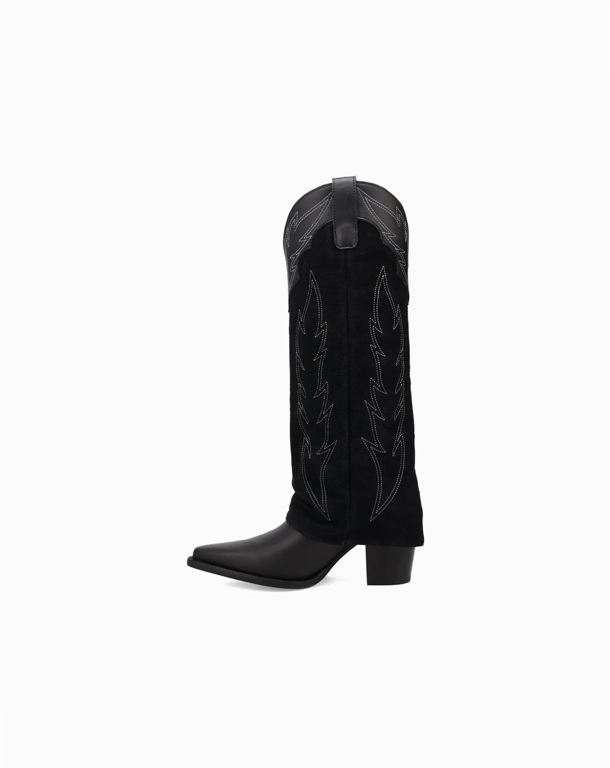 Where sophistication meets the West. These elegantly cuffed boots feature subtle Western detailing, creating a look that's both refined and effortlessly cool