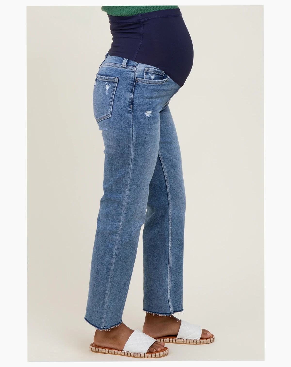 Meet your new go-to jeans: our High Rise Raw Hem Ankle Straight Maternity Jeans blend effortless style with bump-friendly comfort. Designed with a flattering high waist and stretchy belly panel, these jeans grow with you through every trimester. The classic ankle-length straight leg pairs perfectly with sneakers or heels, while the raw hem adds a modern, laid-back edge. Crafted in a super soft, premium denim that moves with you, they re perfect for everyday wear or dressing up for a night out. Step into comfort and style—mama, you deserve both!