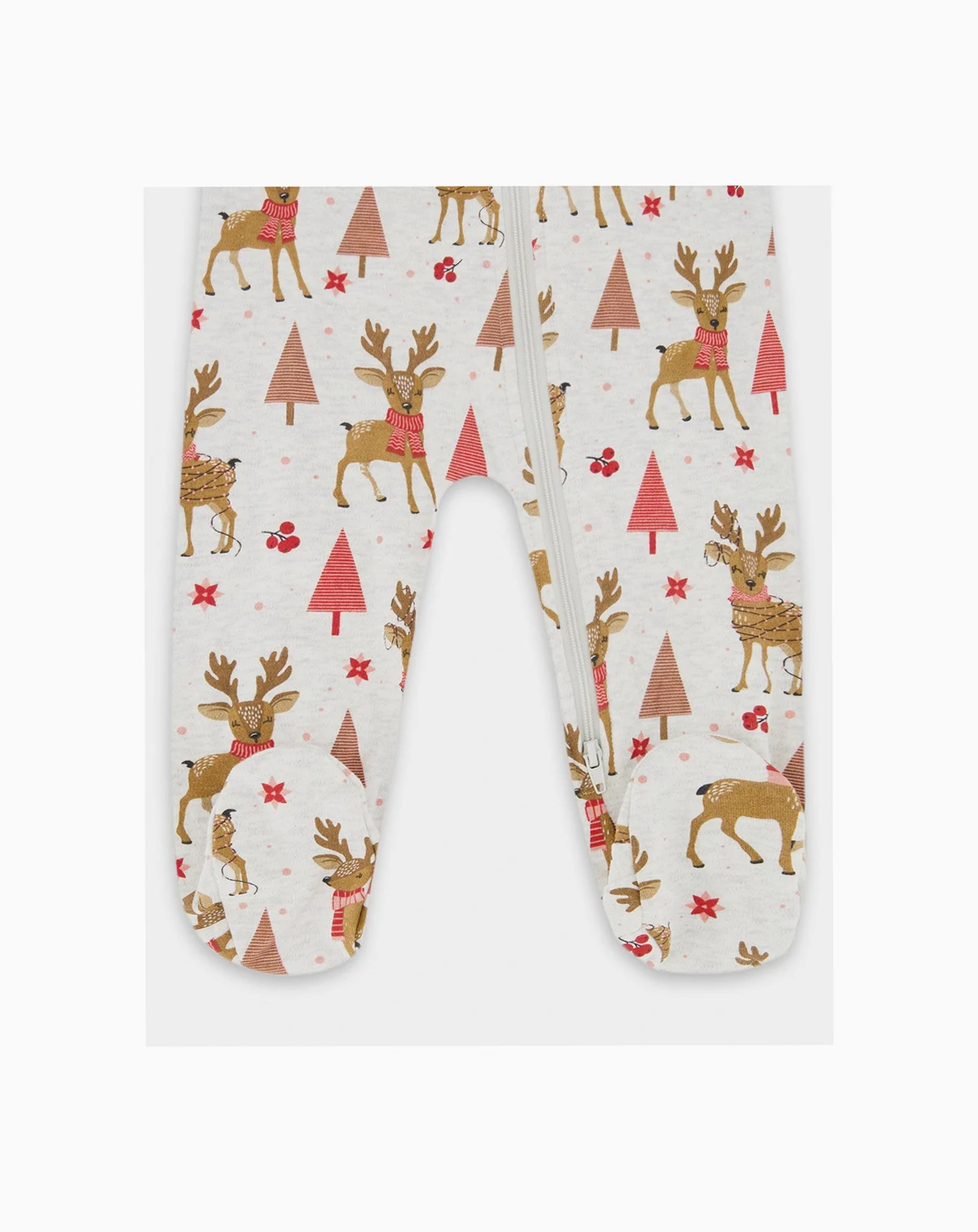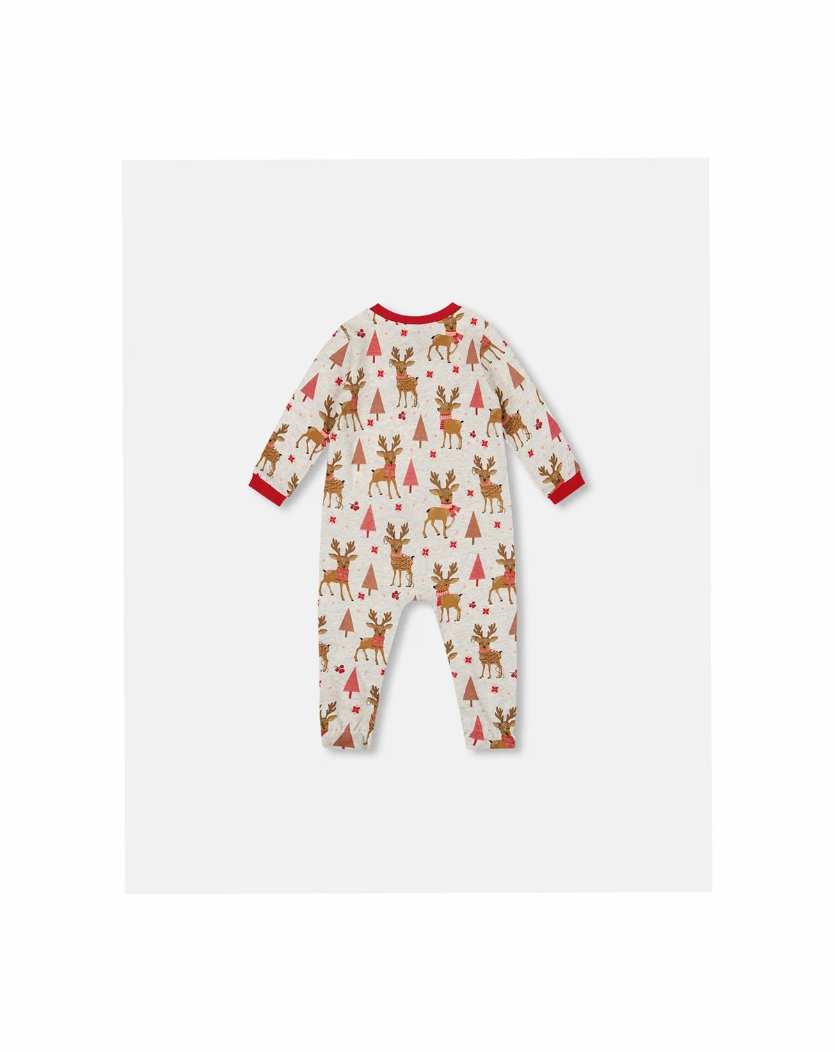 With a playful reindeer motif, this one-piece footie pajama is what sweet dreams are made of. Ultra-soft in cotton interlock, this sleepwear features long sleeves, an asymmetrical zipper closure, solid trim at the neck and wrists, and a darling allover print.