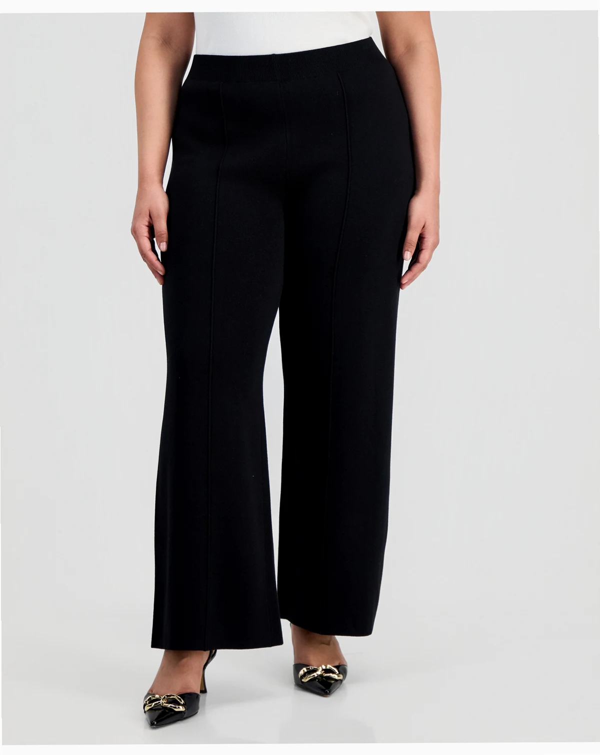 Stay professional and chic but always comfy in these plus size sweater knit pants from Tahari ASL, your new favorite work look.