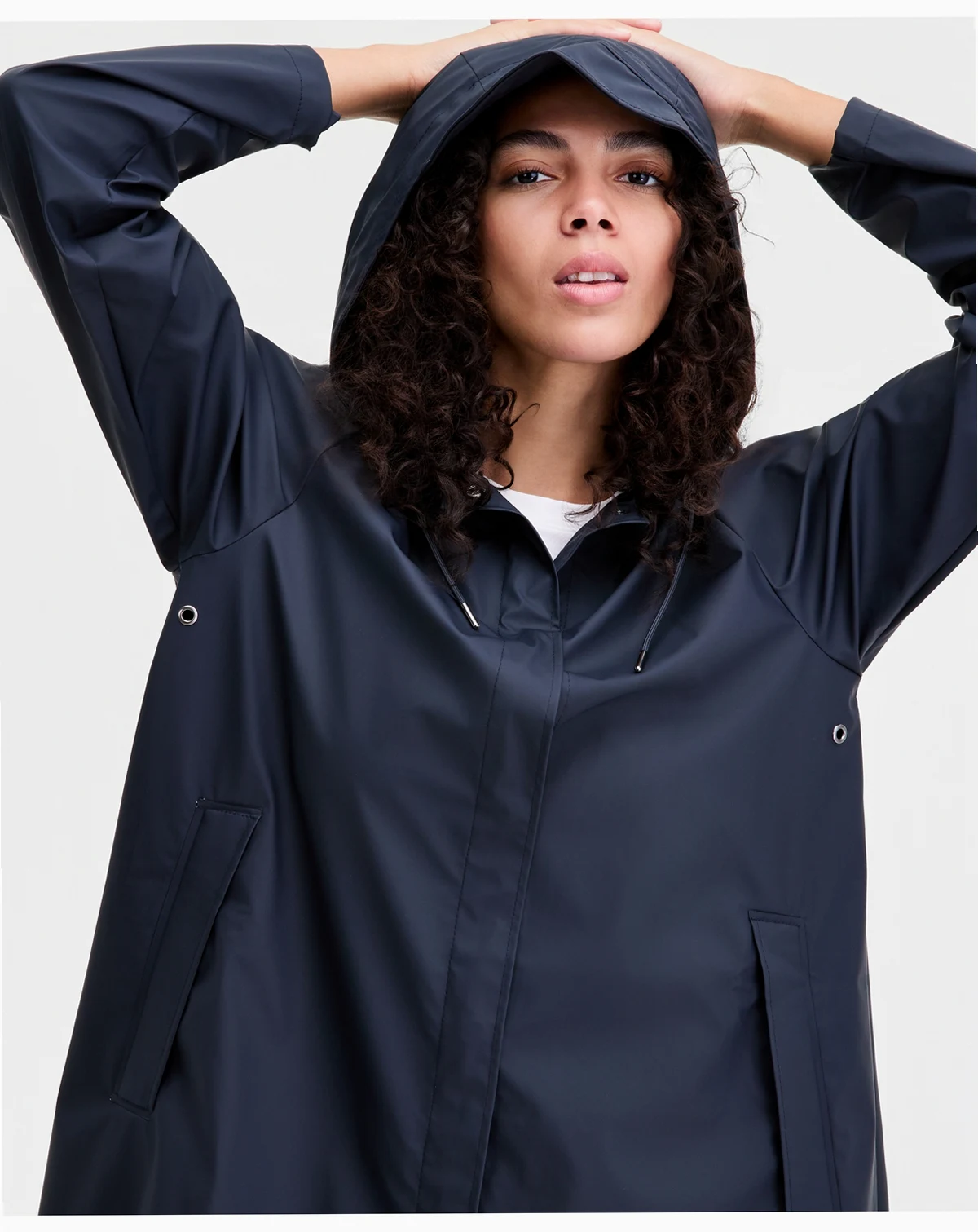 Wet weather is no match for a hooded waterproof jacket from Rains. The swingy A-line design means you look stylish and stay dry.