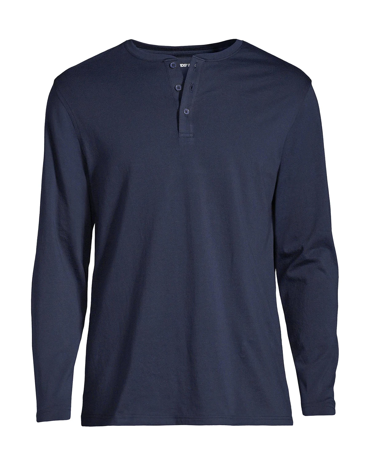 When it comes to classic menswear the henley shirt is hard to beat. After all it's everything a good piece of clothing should be: stylish comfortable and versatile. So treat yourself right and stock up on a few of these Men's Supima Jersey Long Sleeve Henley tops from Lands' End. Made from pure breathable American-grown Supima cotton jersey this shirt for men has a ventilating button-front with a stylish placket and reinforced shoulders won t stretch out. It stands up to pilling and fraying and even holds onto its color for longer.