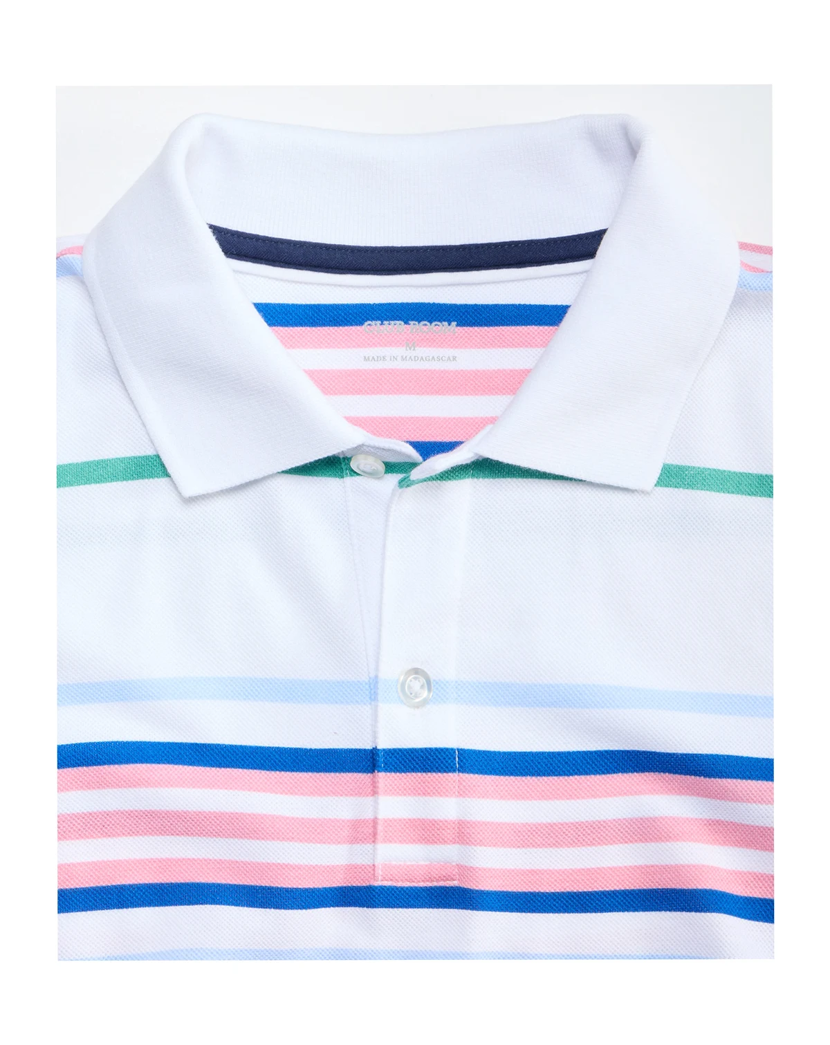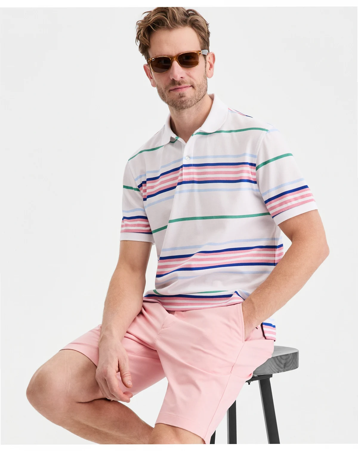 Designed with performance-ready fabric, this Club Room polo shirt goes back to basics with a classic striped style.