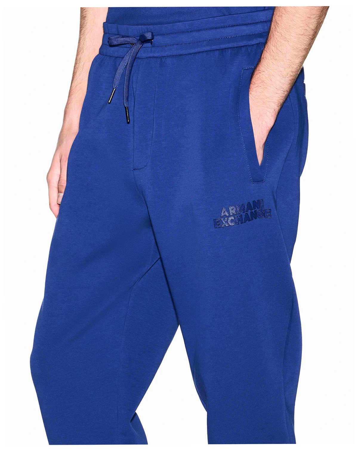 Elevate your casual wardrobe with this fleece jogger featuring a bold Armani Exchange logo across the leg. The logo is crafted using a 3D mesh technique with a color outline, adding depth and a modern edge to the minimalist design. Made for versatility, this jogger pairs effortlessly with the matching T-shirts and sweatshirts.