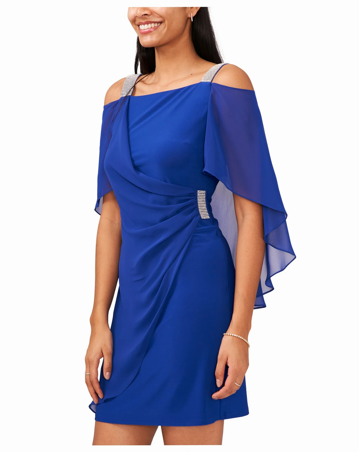 Polyester/spandex; lining: polyester; IMPORTANT NOTE: This item arrives with a return tag attached and instructions for removal. Once the tag is removed from the dress, this item cannot be returned.