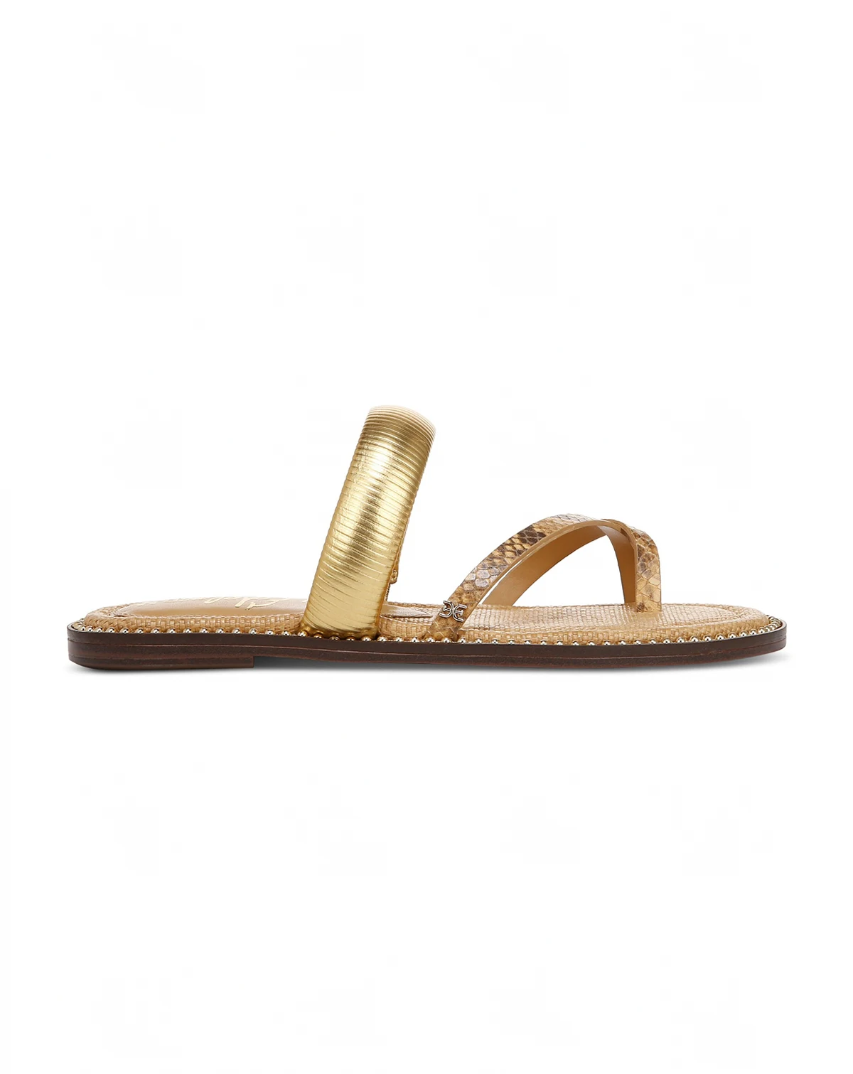 Asymmetrical and understated, the Sam Edelman Tillie sandals dress up or down with a gold-tone Midas touch.
