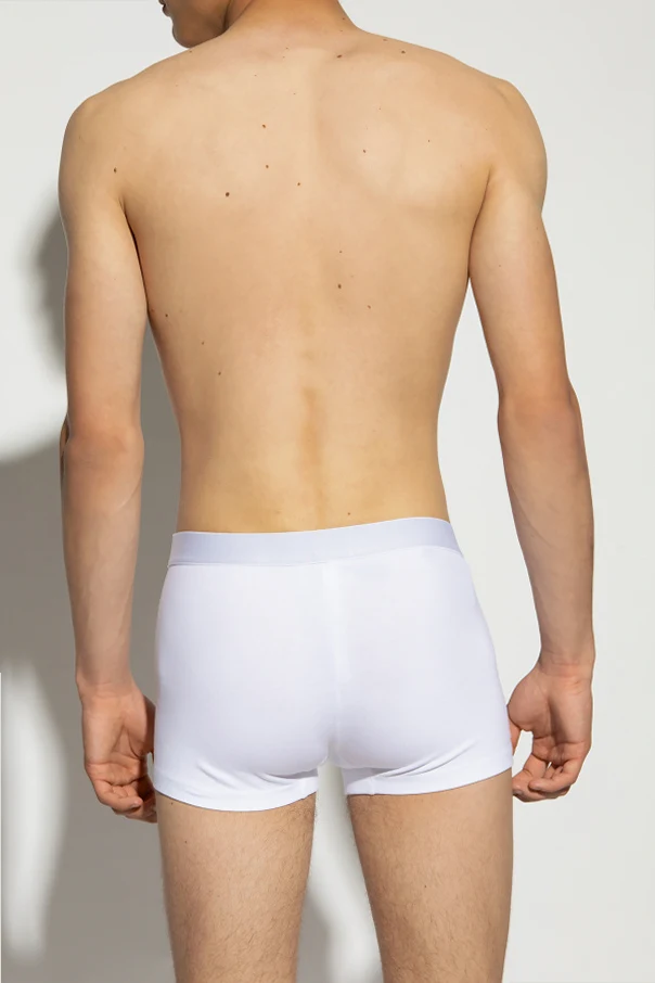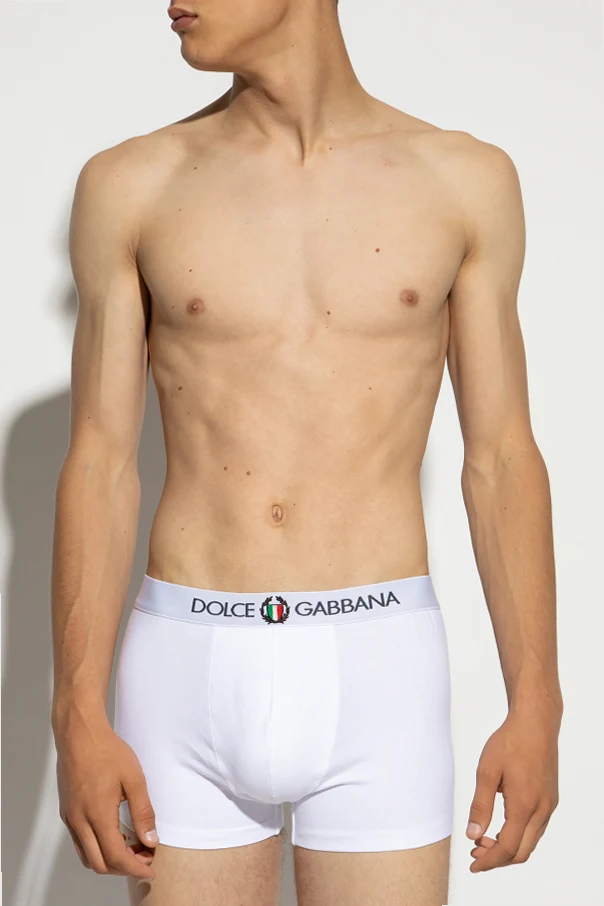 White boxers from Dolce & Gabbana. Made of cotton, this pair features an elasticated waistband with a black logo and multicolored emblem and laurel patch.