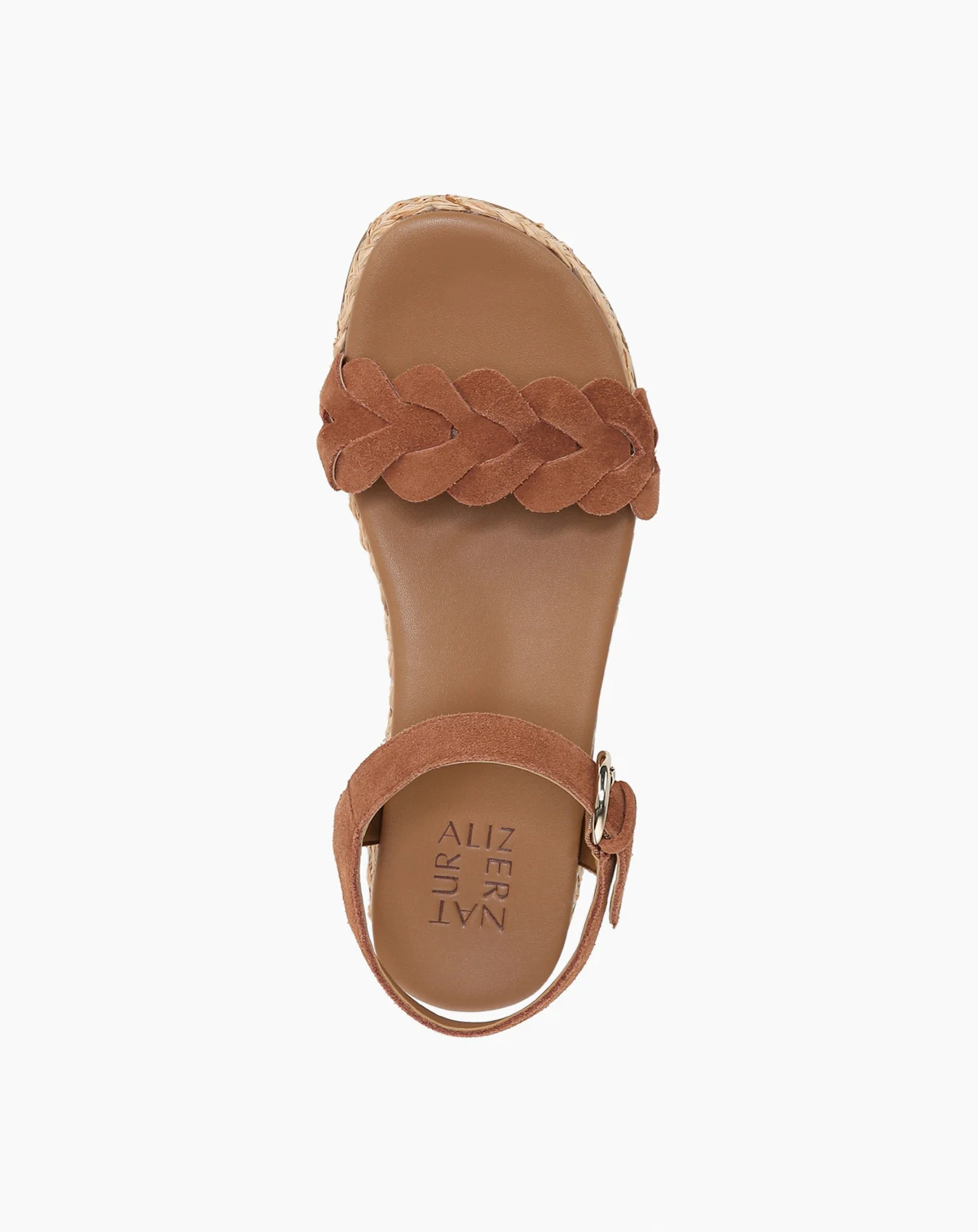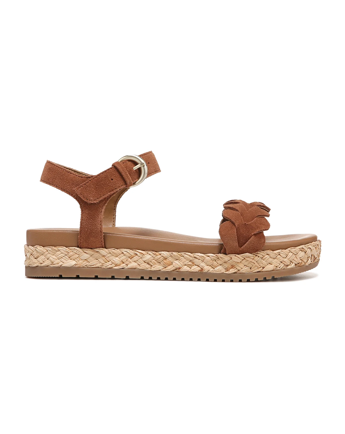 Made with braided details for an artisanal feel, these will easily become your new favorite women's sandals. With Naturalizer, you have options; shop both medium and wide width sandals for women. Comfortable + casual espadrille sandals with raffia bottom. Leather or suede upper with an open toe. Adjustable buckle closure. Contour+ Comfort technology for a premium fit and all-day comfort experience. EVA footbed. Non-slip outsole. 1.25-inch flatform heel. WHY YOU'LL LOVE IT: Designed to the contours of a woman's foot. Available in an inclusive range of sizes and widths for a custom-designed fit and all-day wear, with a promise of both elegance and utility. The Beautiful Fit. Since 1927.