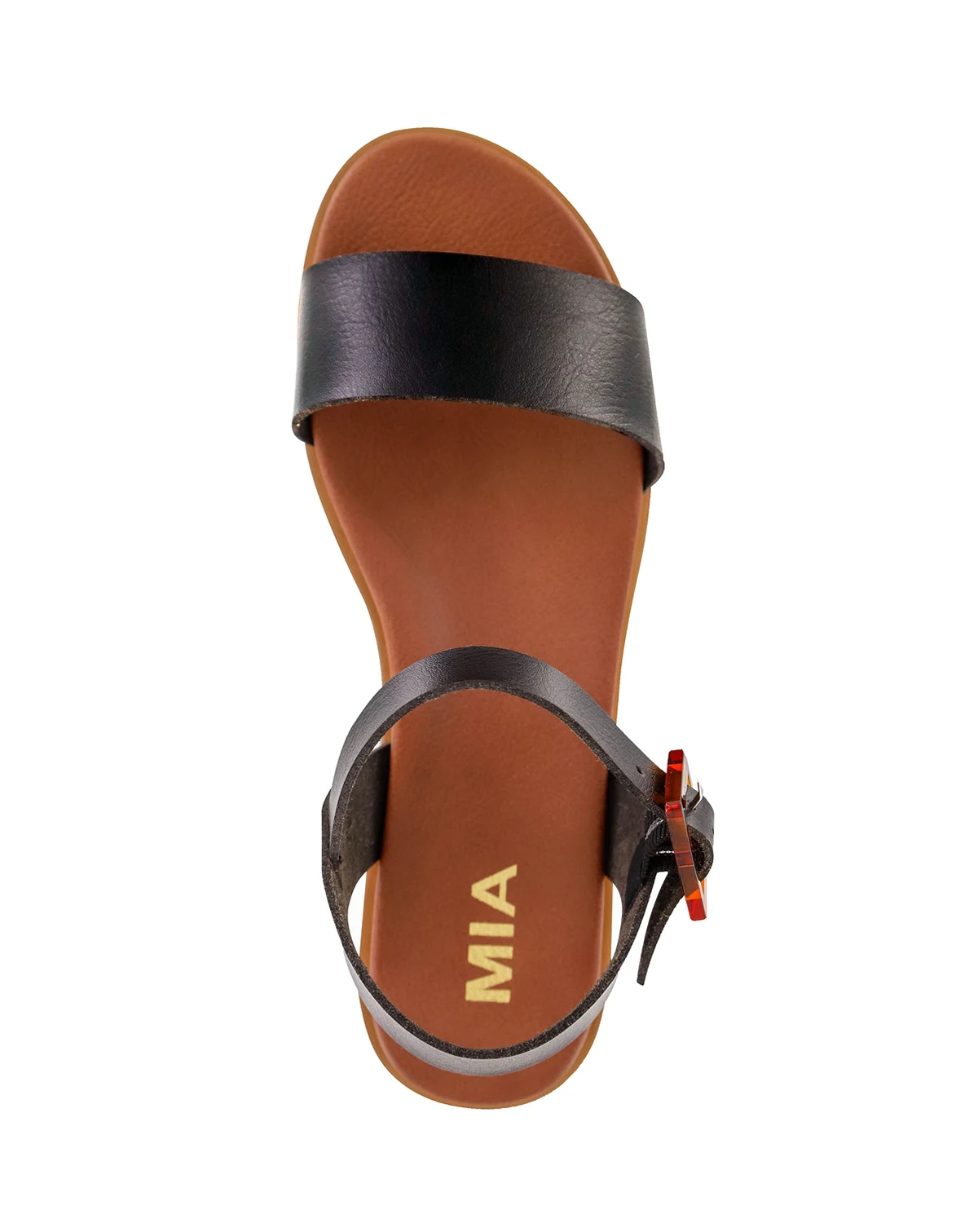 Stay cool and casual in the PEYTON. The sandal is designed from a faux leather upper with a foot flattering, cut edged strap with an adjustable closure at the ankle. Finished on MIA's signature contoured footbed for ultimate comfort.