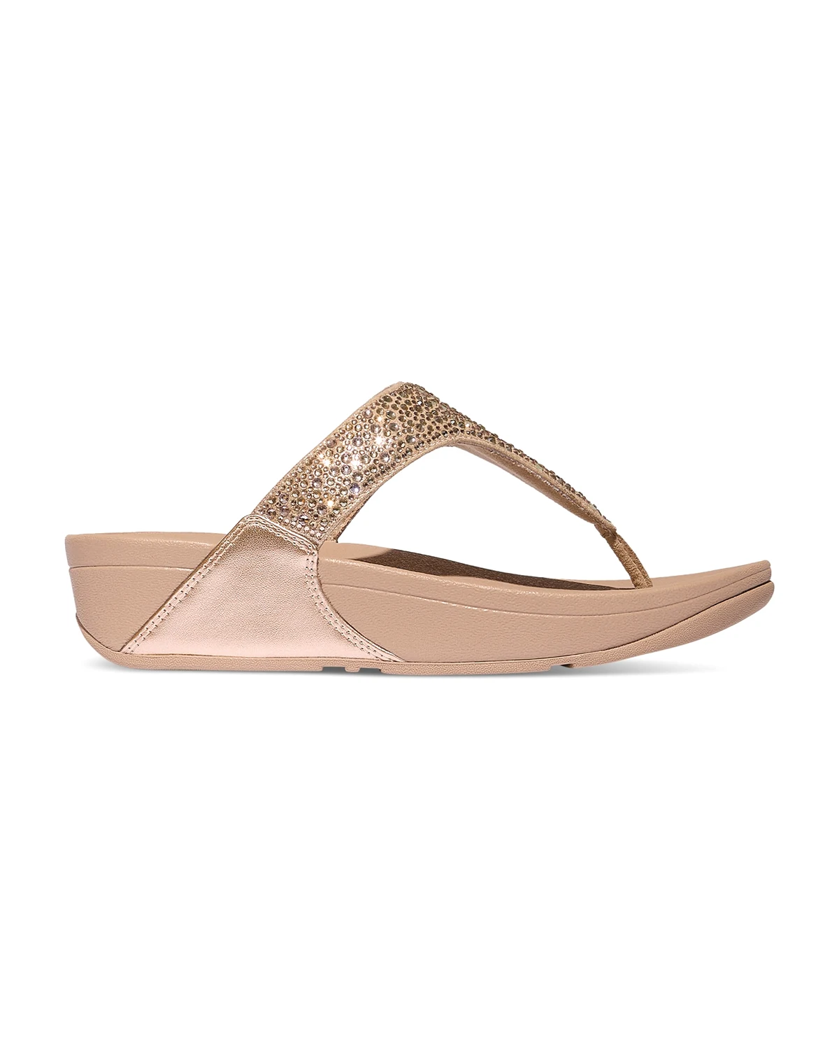 Glittering straps secure a glamorous lift in the cushioned wedge heel and easy slip-on comfort of the FitFlop Lulu sandals.