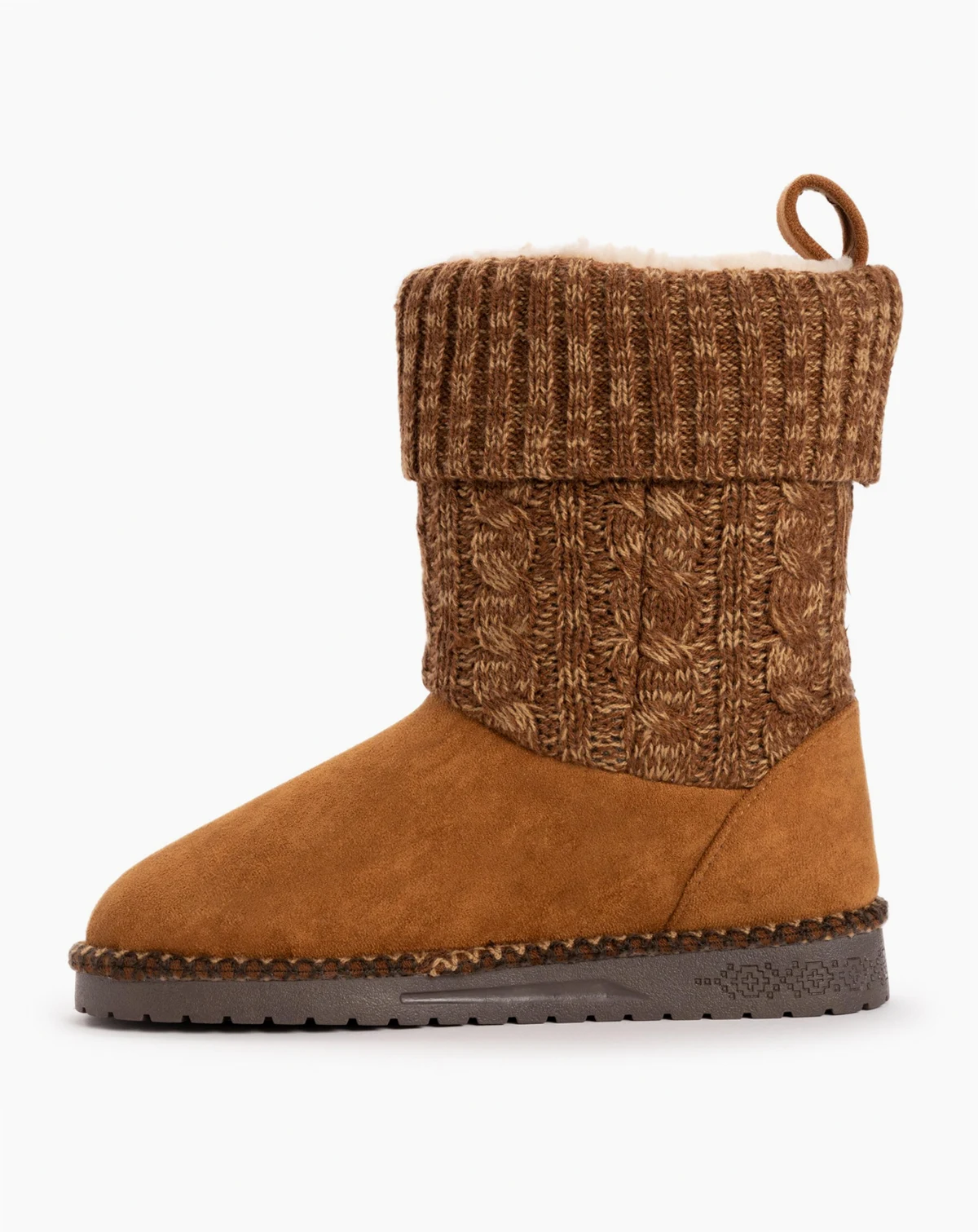 Stay warm, comfy and dry in Essentials by MUK LUKS Women's Janet Boots. The water resistant knit upper features a trendy marl pattern, cute side button detail and stylish heel kick. Shaft height is 8" and shaft circumference is 15".