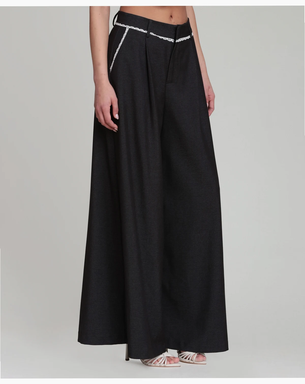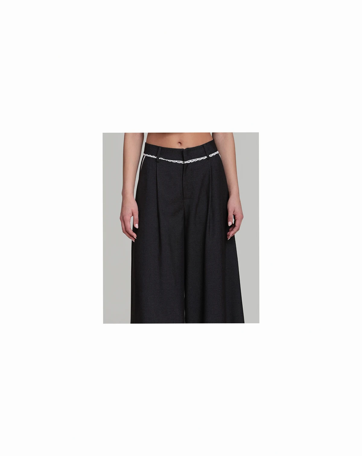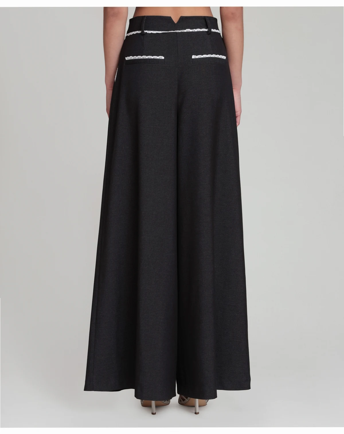 Embrace effortless sophistication with these Avec Les Filles trousers designed with a flattering mid-rise and bold wide-leg cut. Two functional pockets and a front fly with a zipper bring together practicality and luxury.