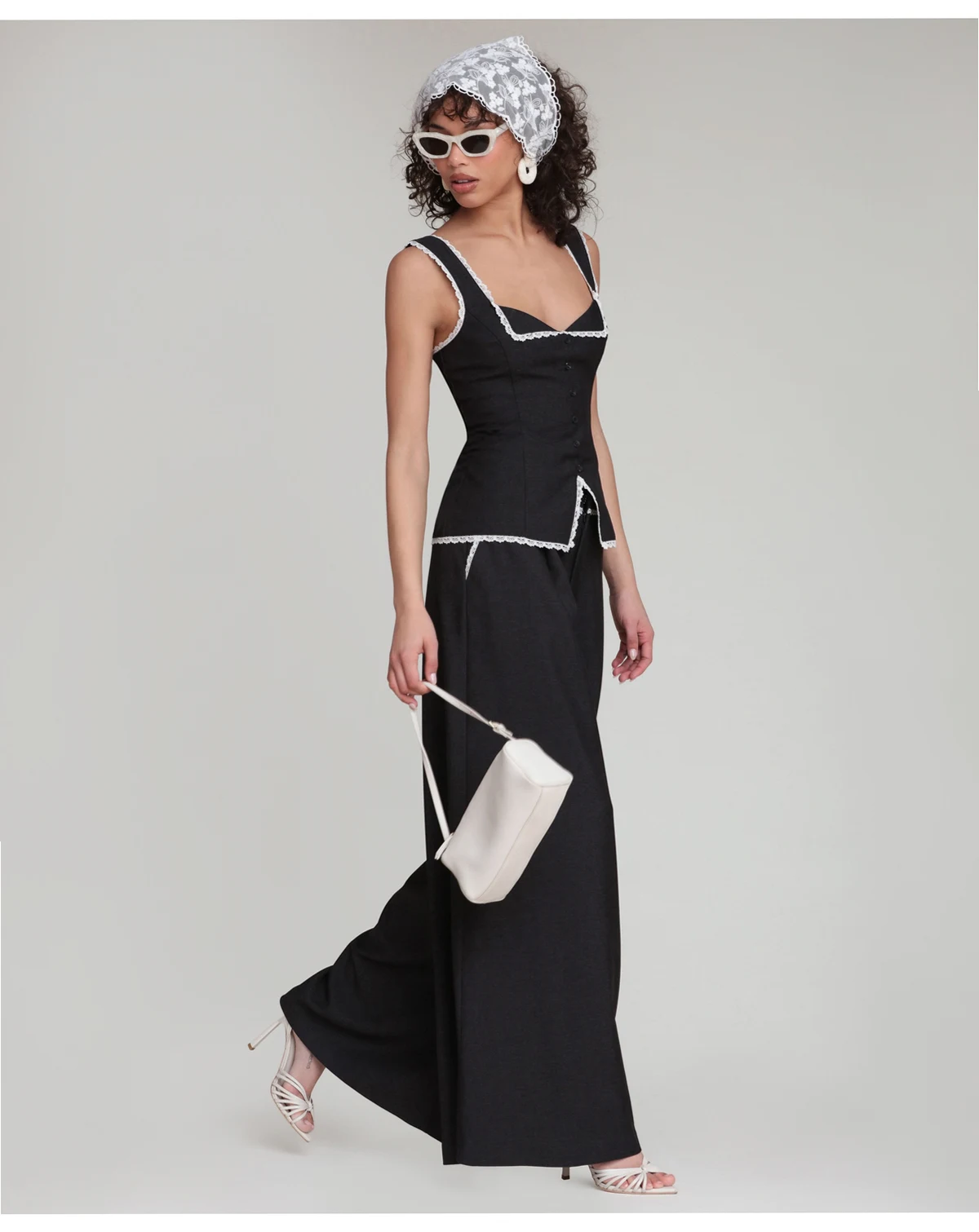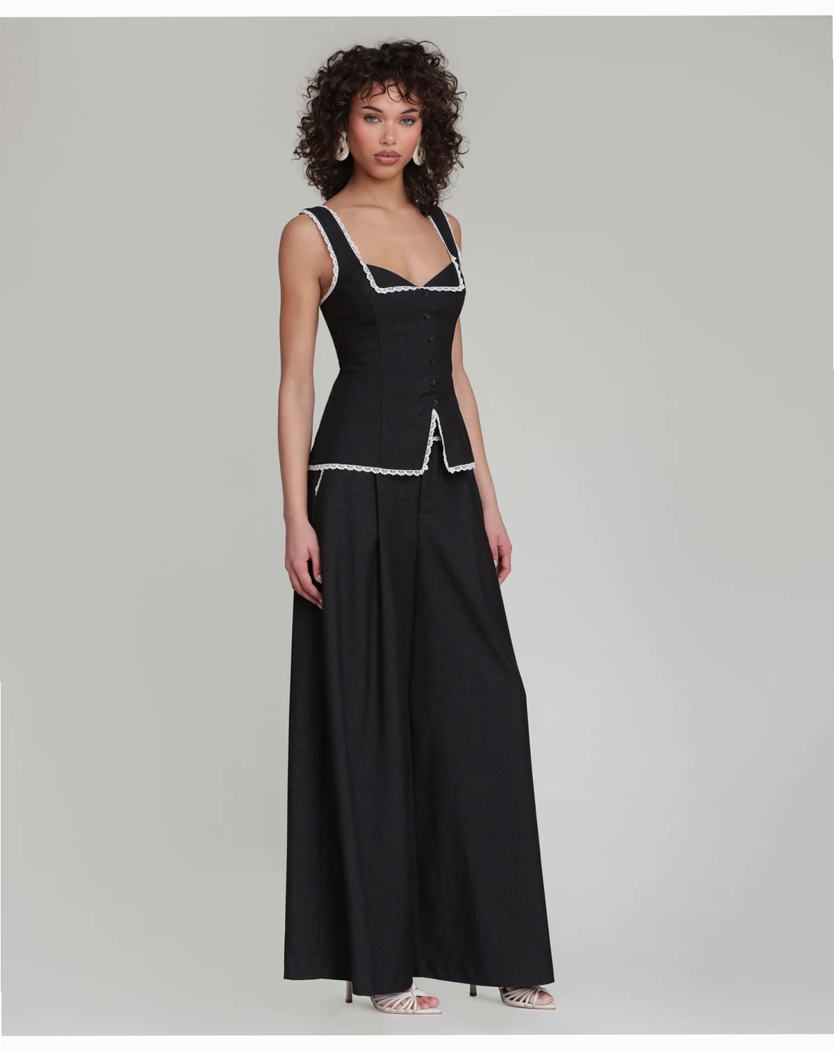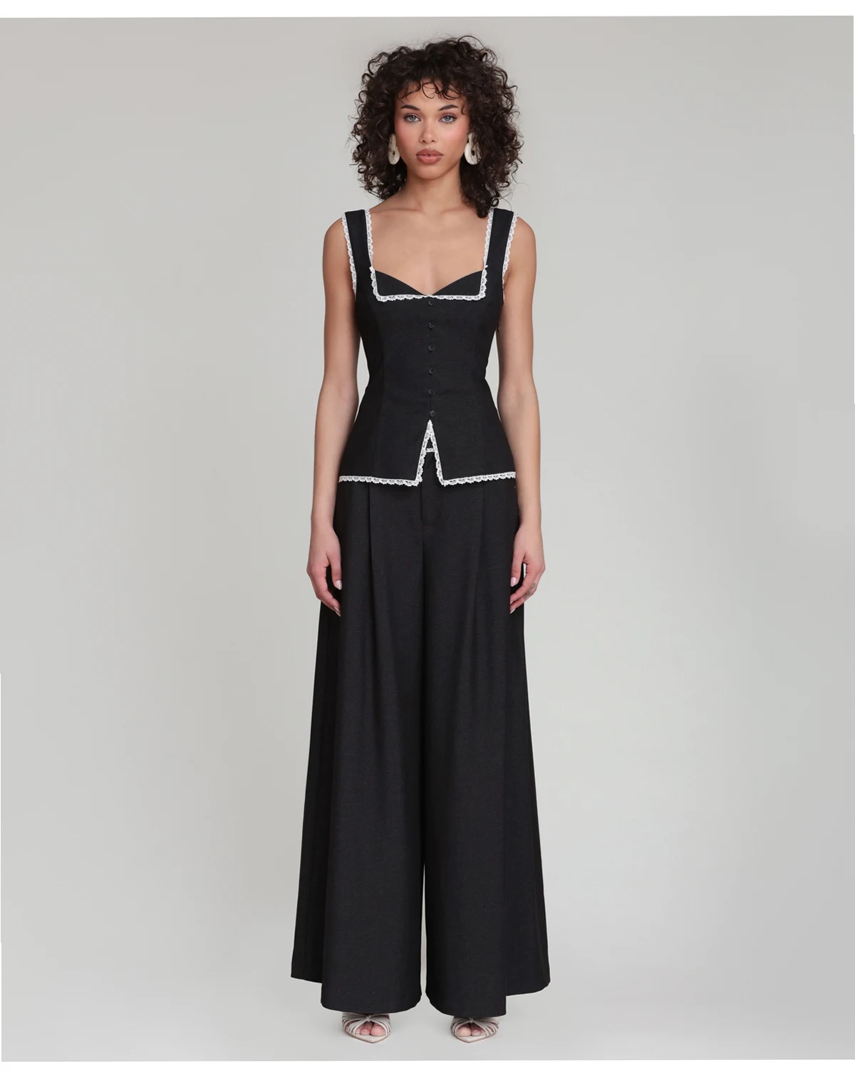Embrace effortless sophistication with these Avec Les Filles trousers designed with a flattering mid-rise and bold wide-leg cut. Two functional pockets and a front fly with a zipper bring together practicality and luxury.