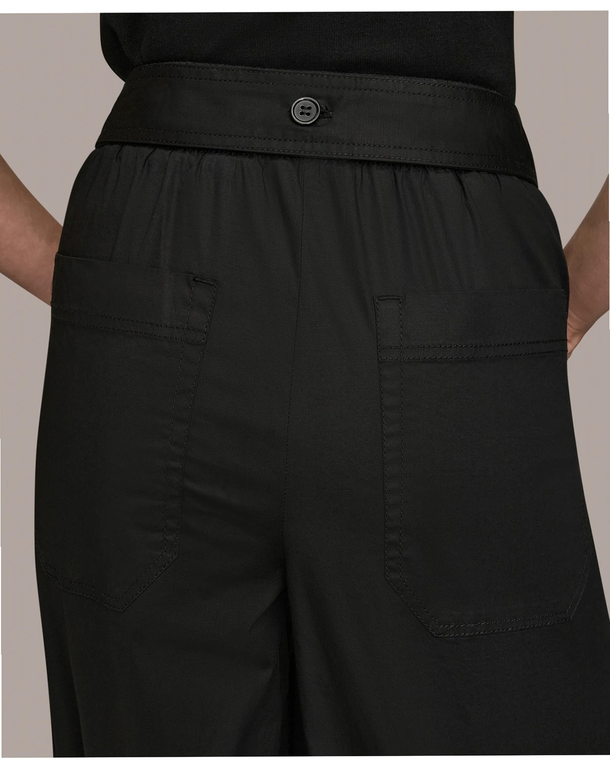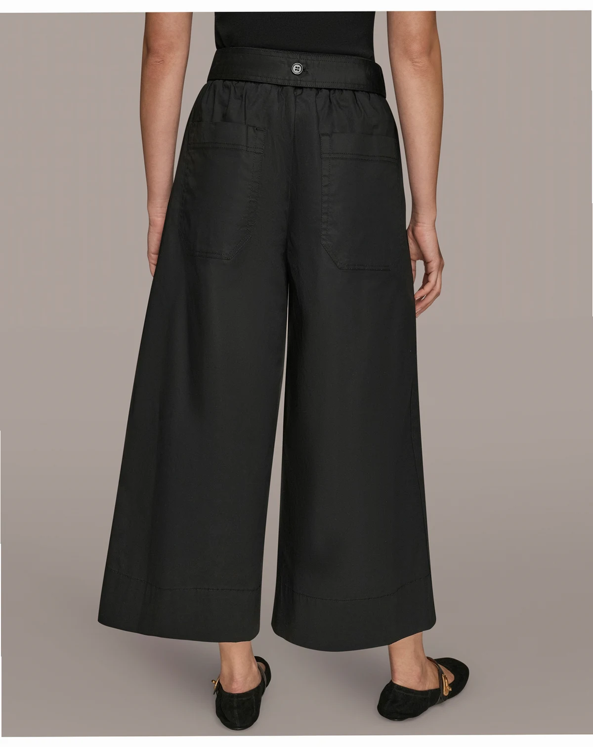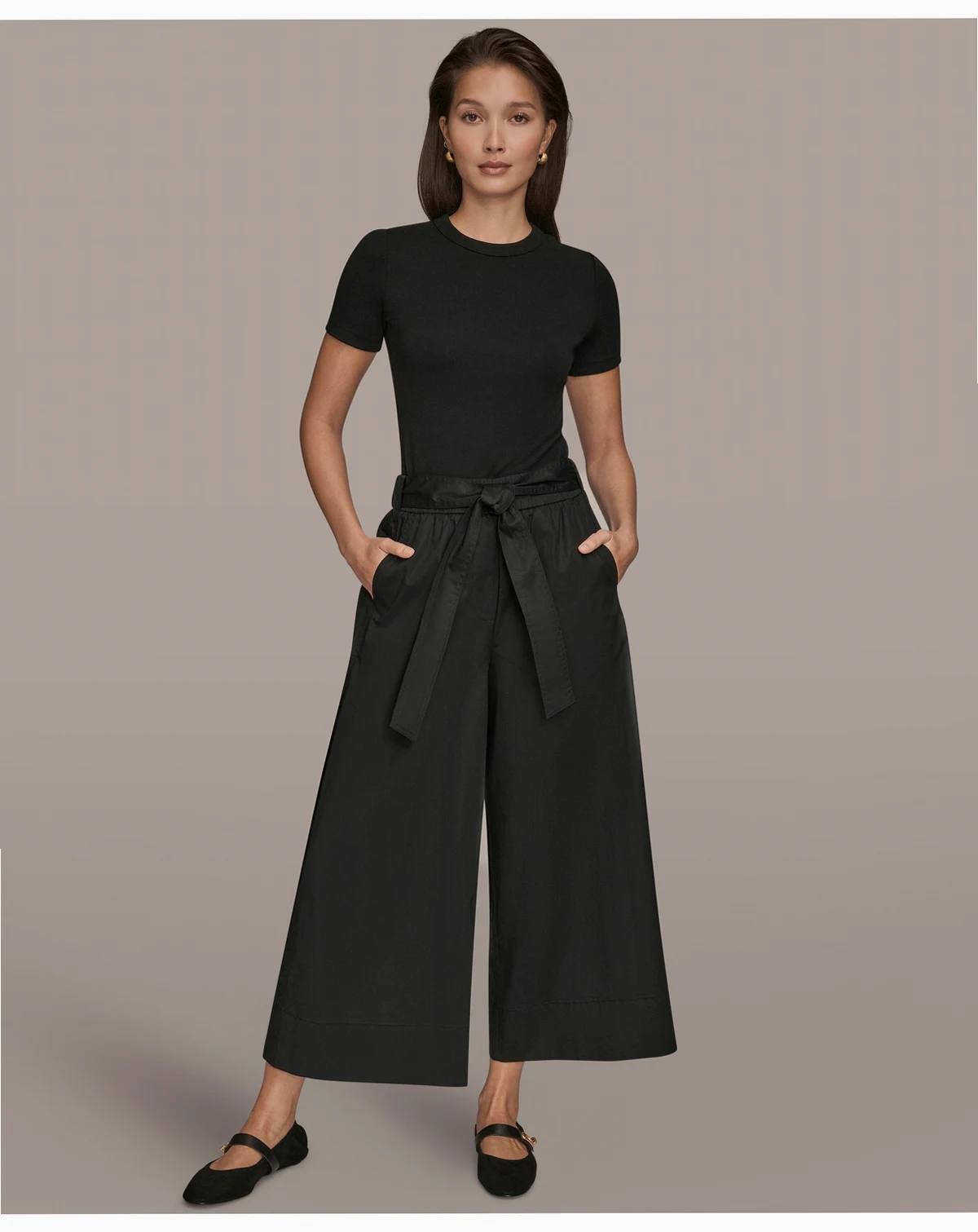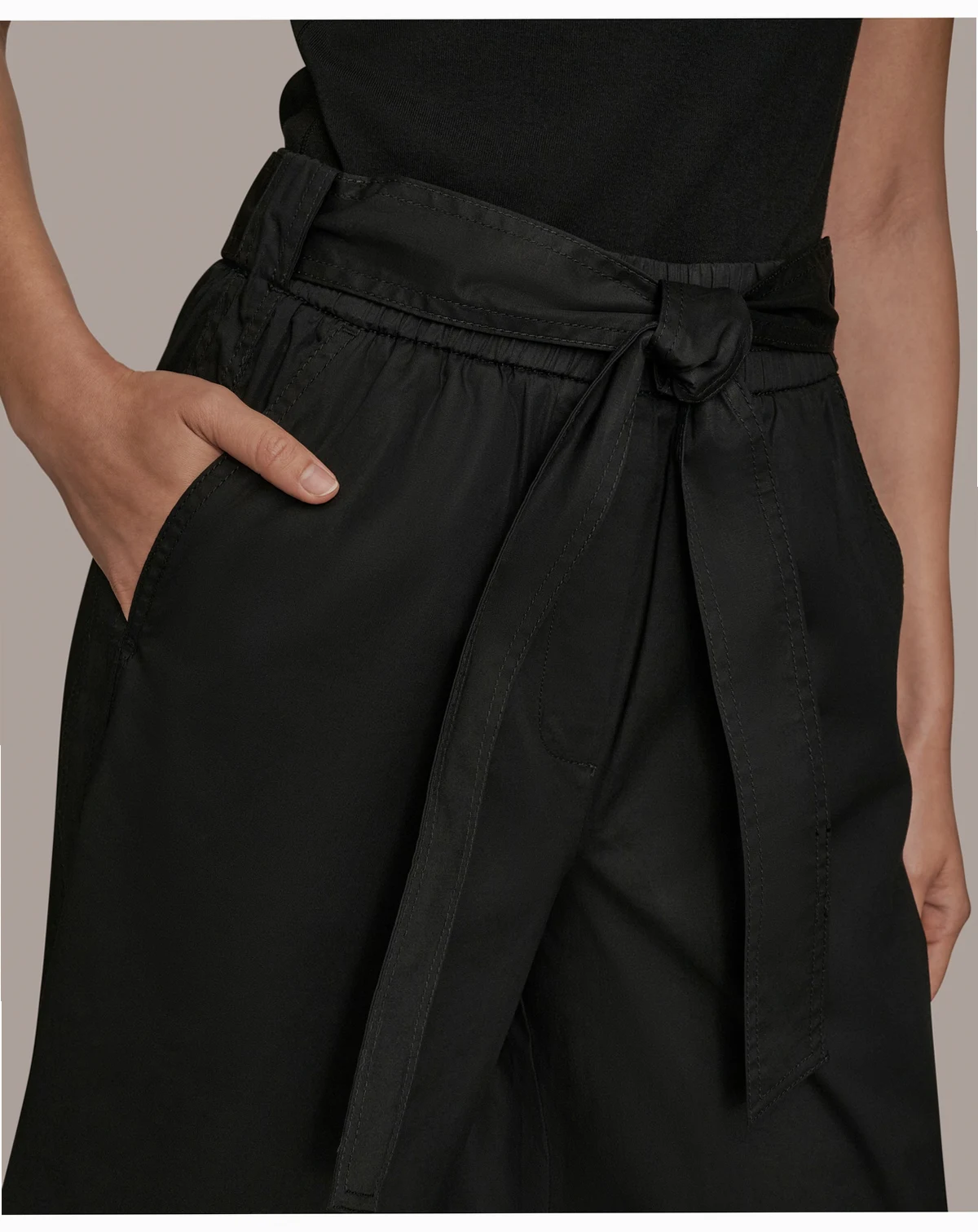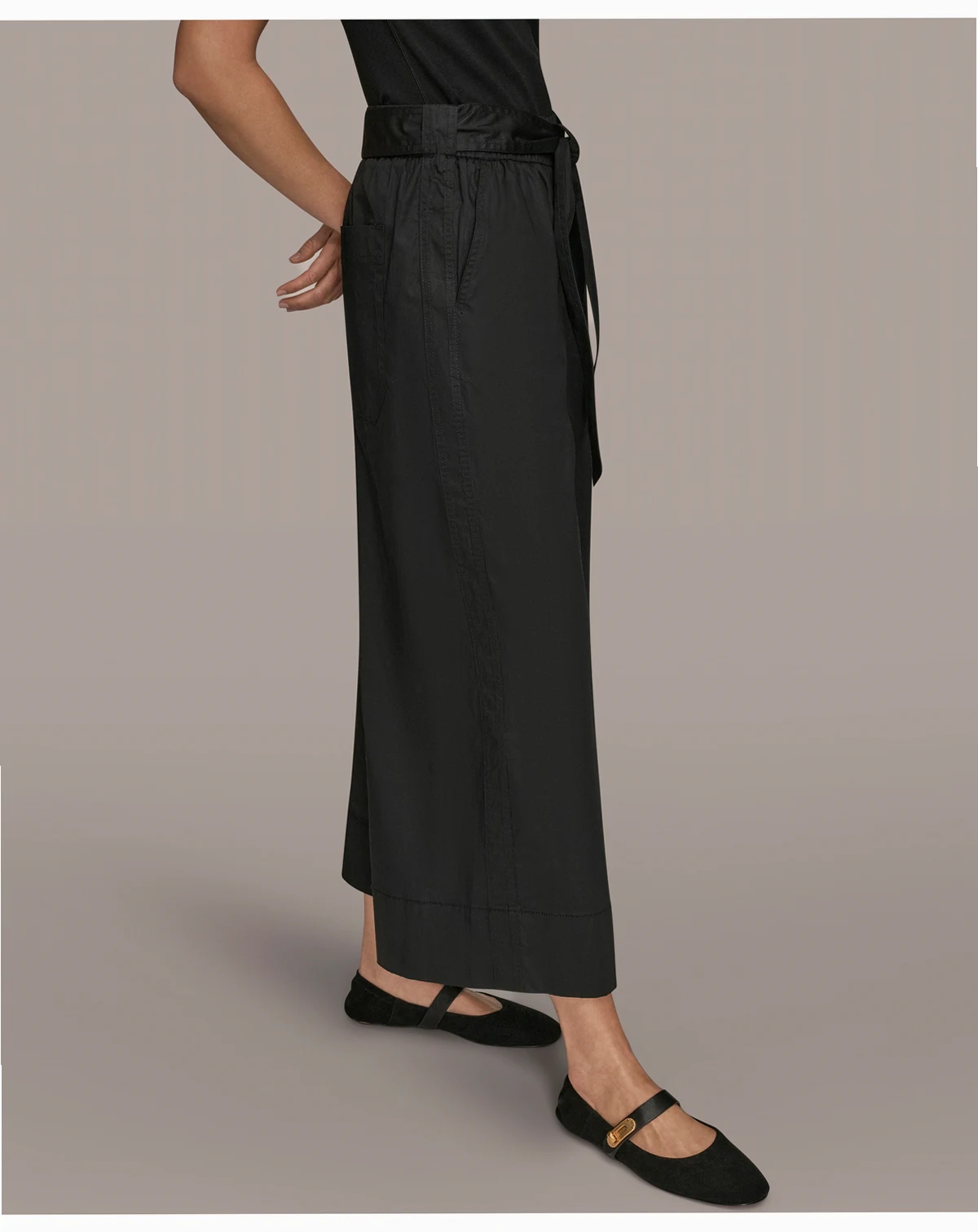 Tailored comfort defines the Donna Karan New York Women's Stretch Poplin Self Belted Crop Pants, featuring a self-tie belt, front and back pockets, and mid-rise stretch fit. Perfect for city errands, weekend brunches, or holiday travel.