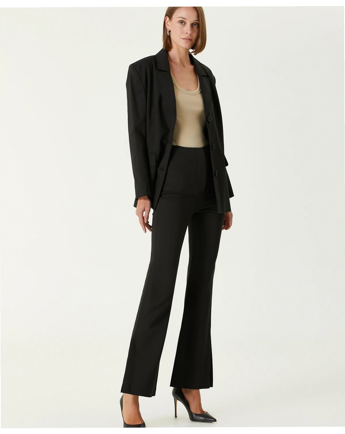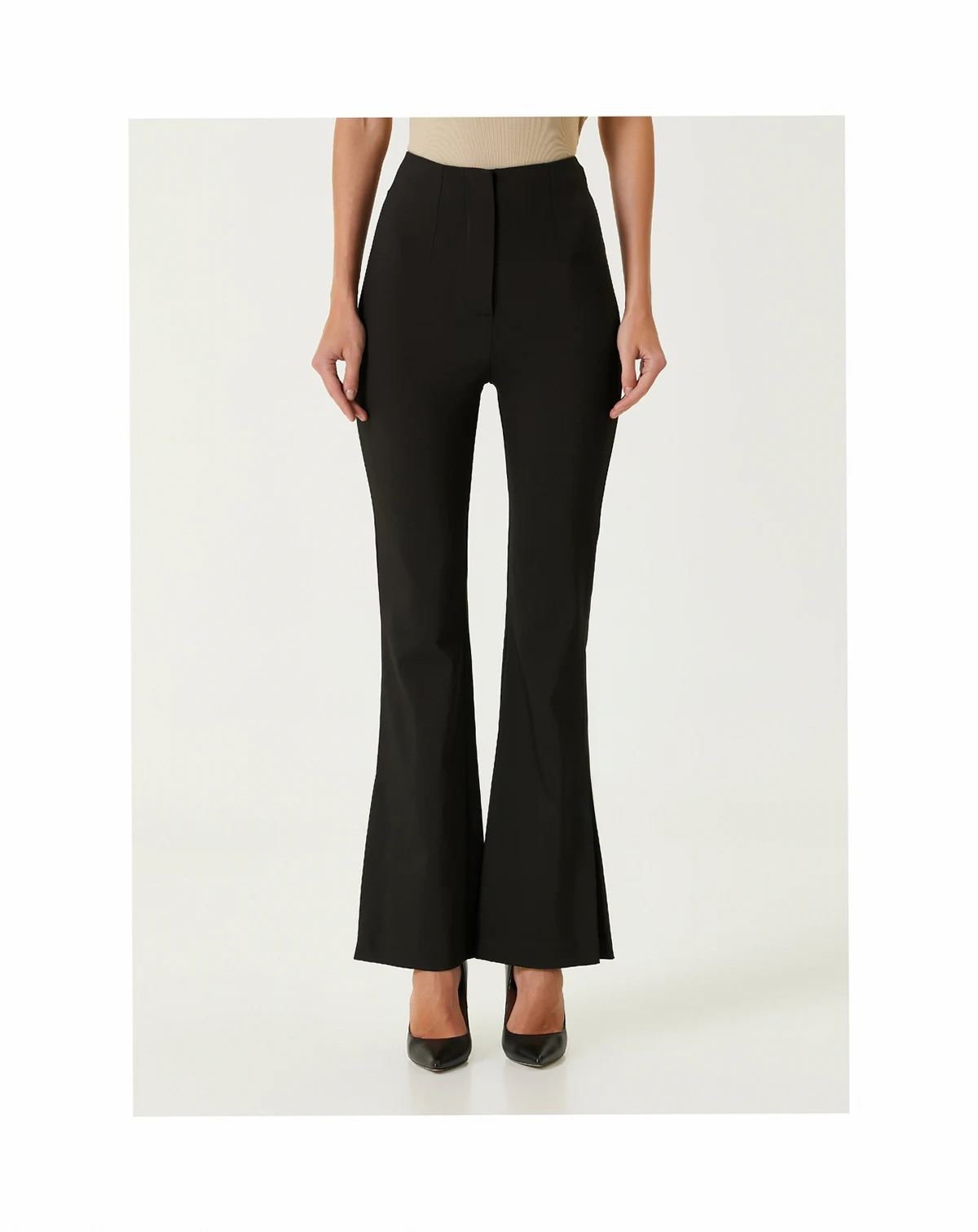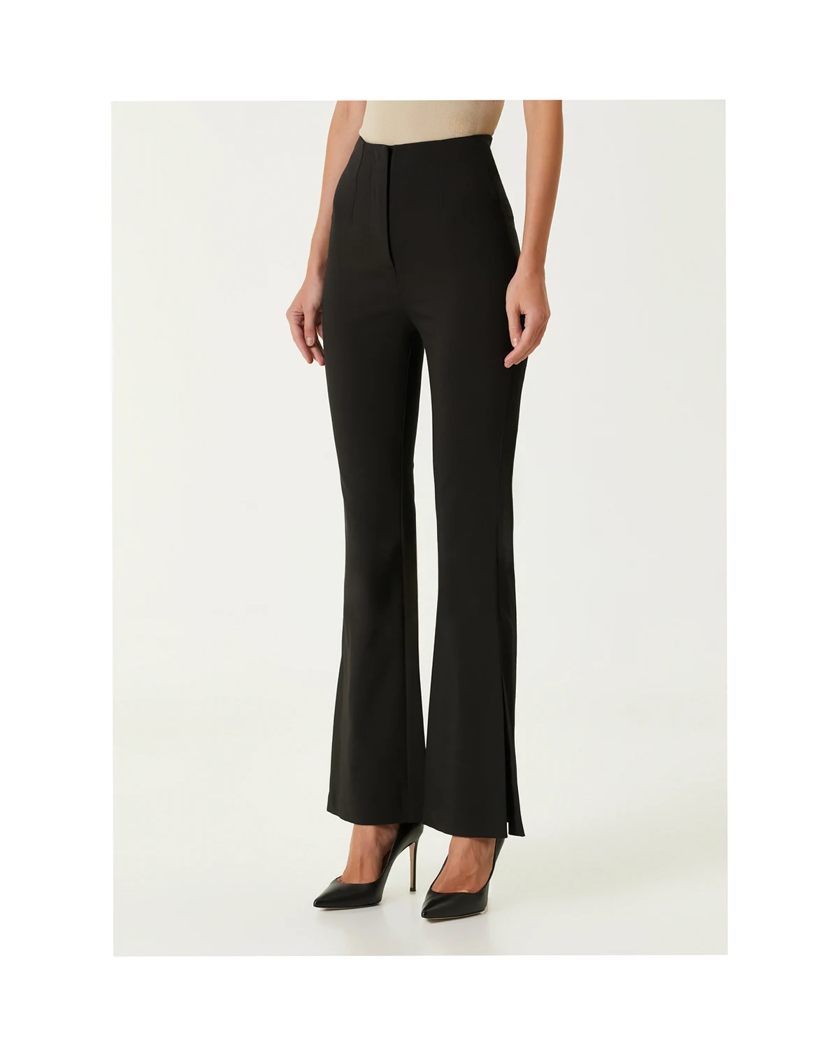 Flared skinny fit with front zipper for a sleek, stylish silhouette