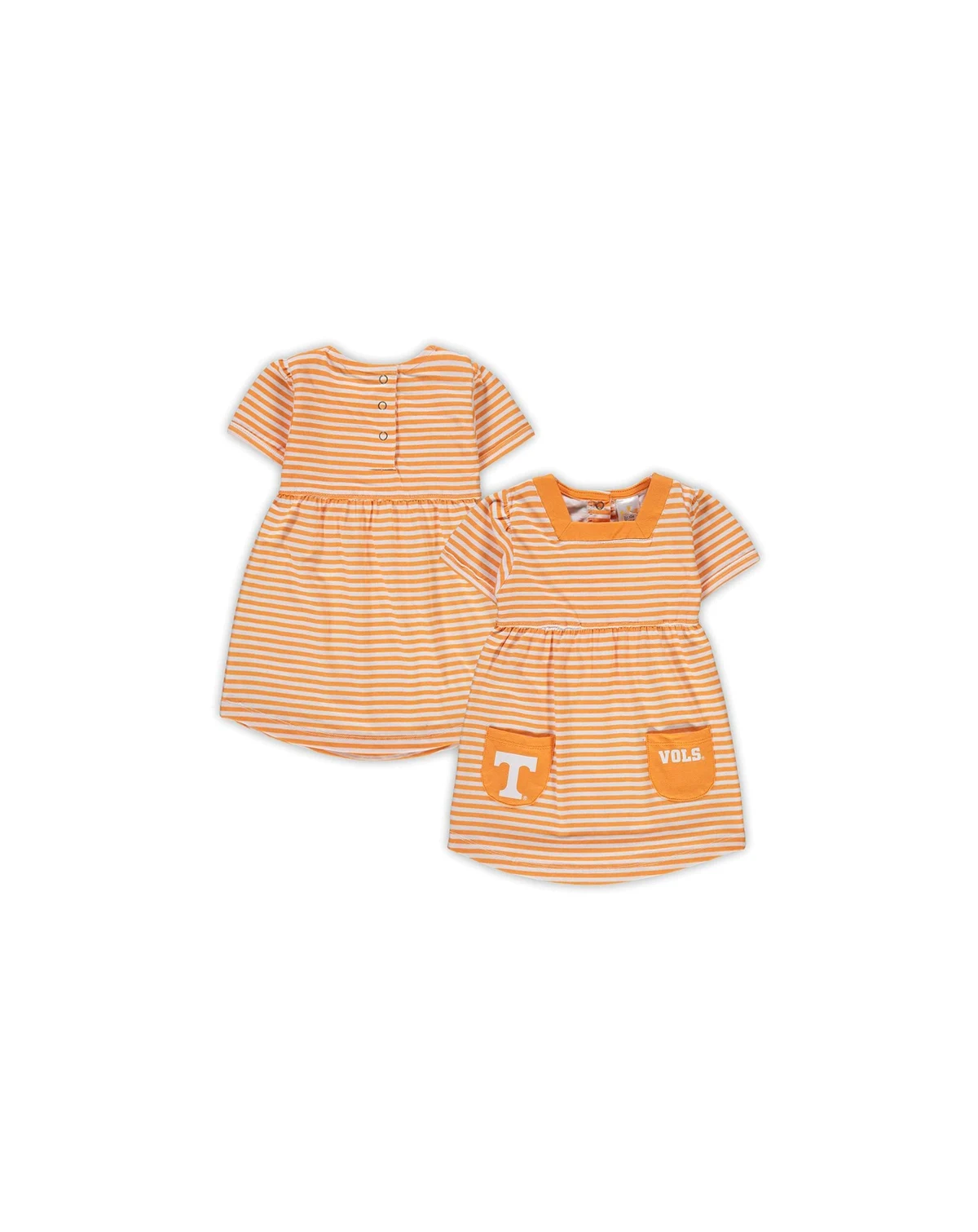 Your young fan will look absolutely adorable on game day when they have this Tennessee Volunteers Striped dress. It's designed in team colors with two patch pockets on the front. Printed Tennessee Volunteers graphics ensure your youngster can officially join in on the fun.