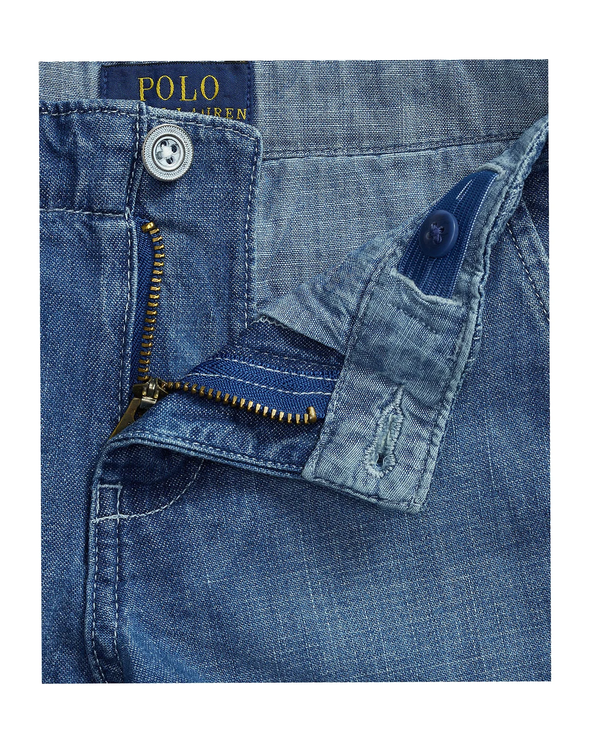 Distinctly lived-in character defines these Polo Ralph Lauren indigo denim shorts, dyed to develop unique fading over time for one-of-a-kind appeal. Adjustable interior tabs and embroidery deliver comfort, longevity, and a refined finish.