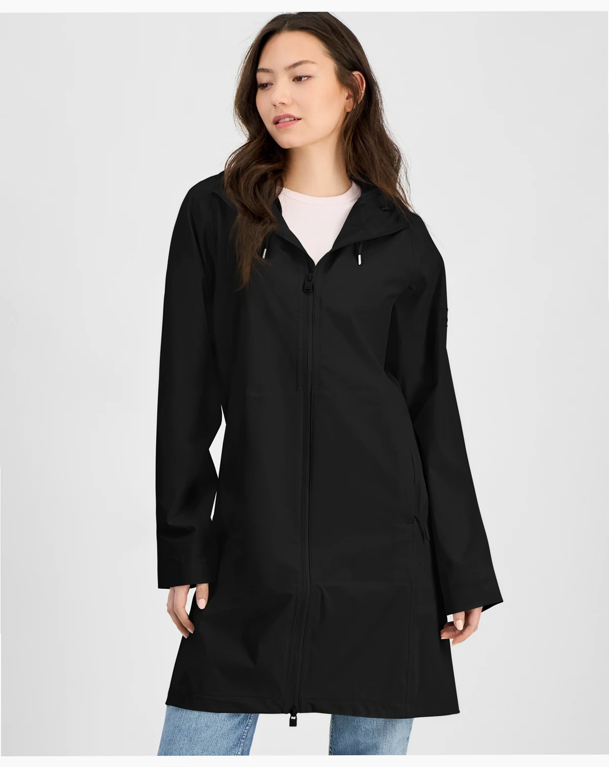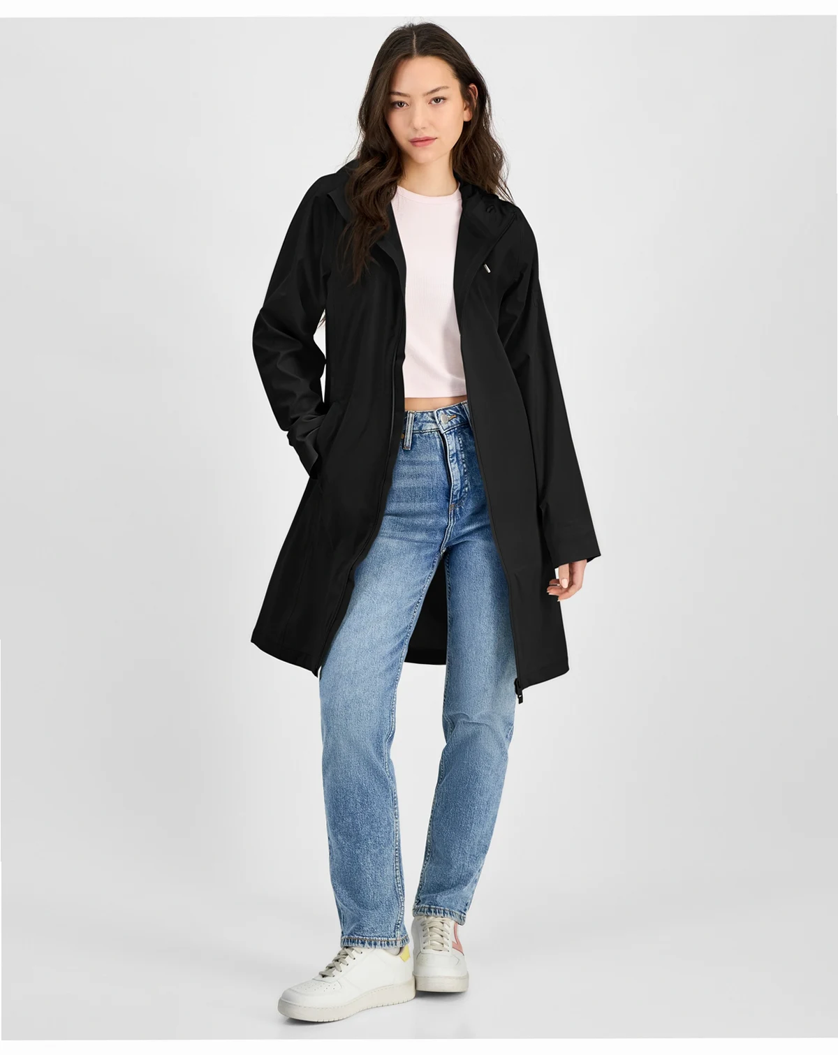 A waterproof finish and hooded silhouette makes this long rain coat by Rains the perfect pick to keep you dry, whilst also in style.