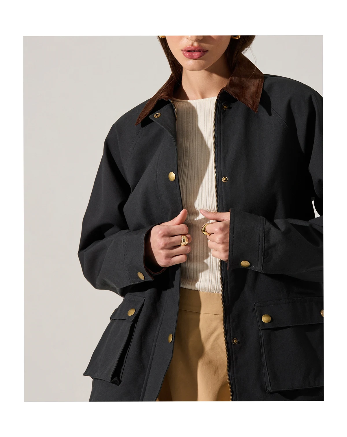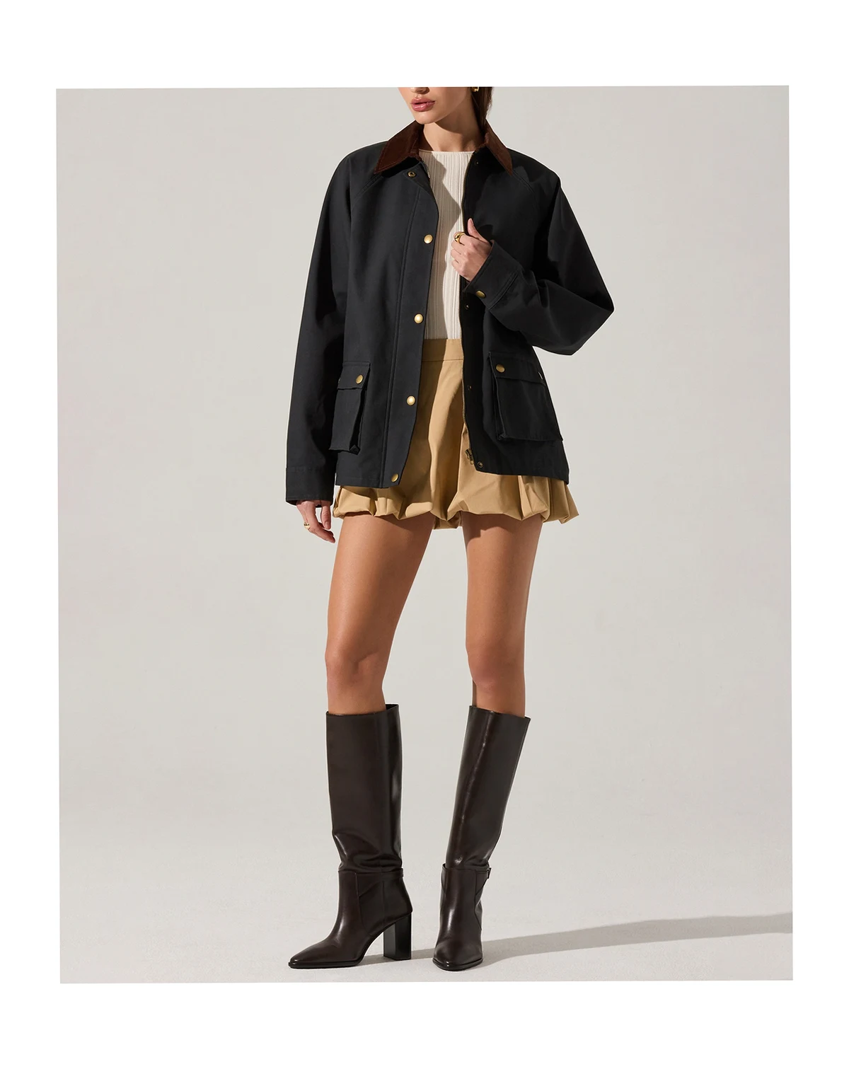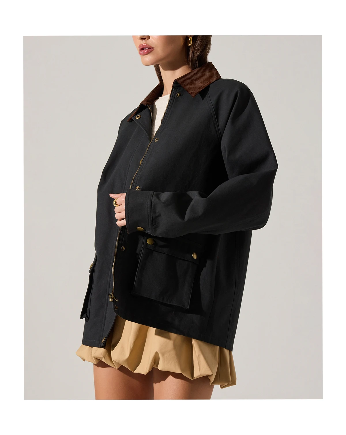 Step out in effortless style with this ASTR the Label crewneck jacket, featuring long sleeves for a sleek, comfortable layer. Functional pockets add practicality while complementing the clean, modern silhouette.