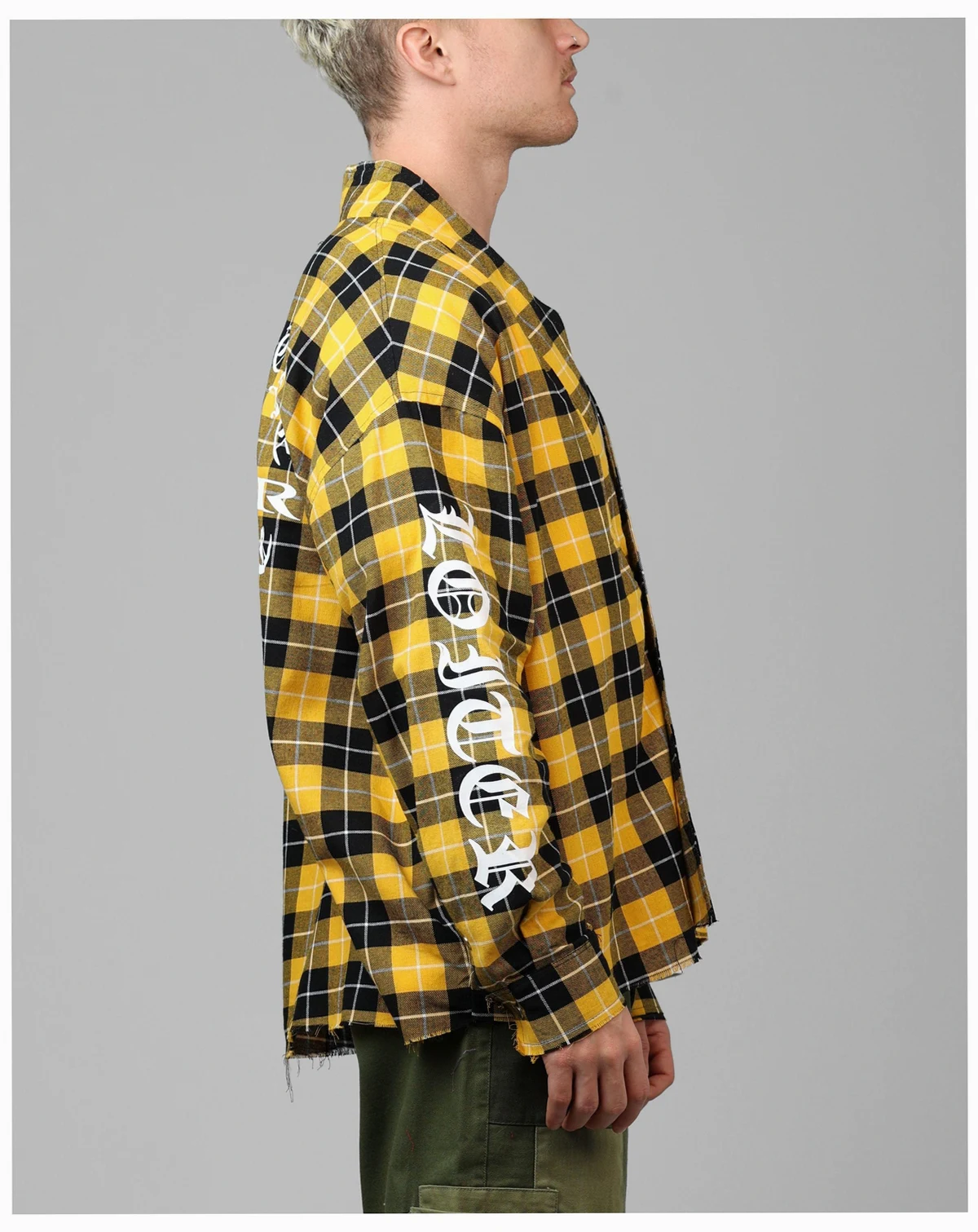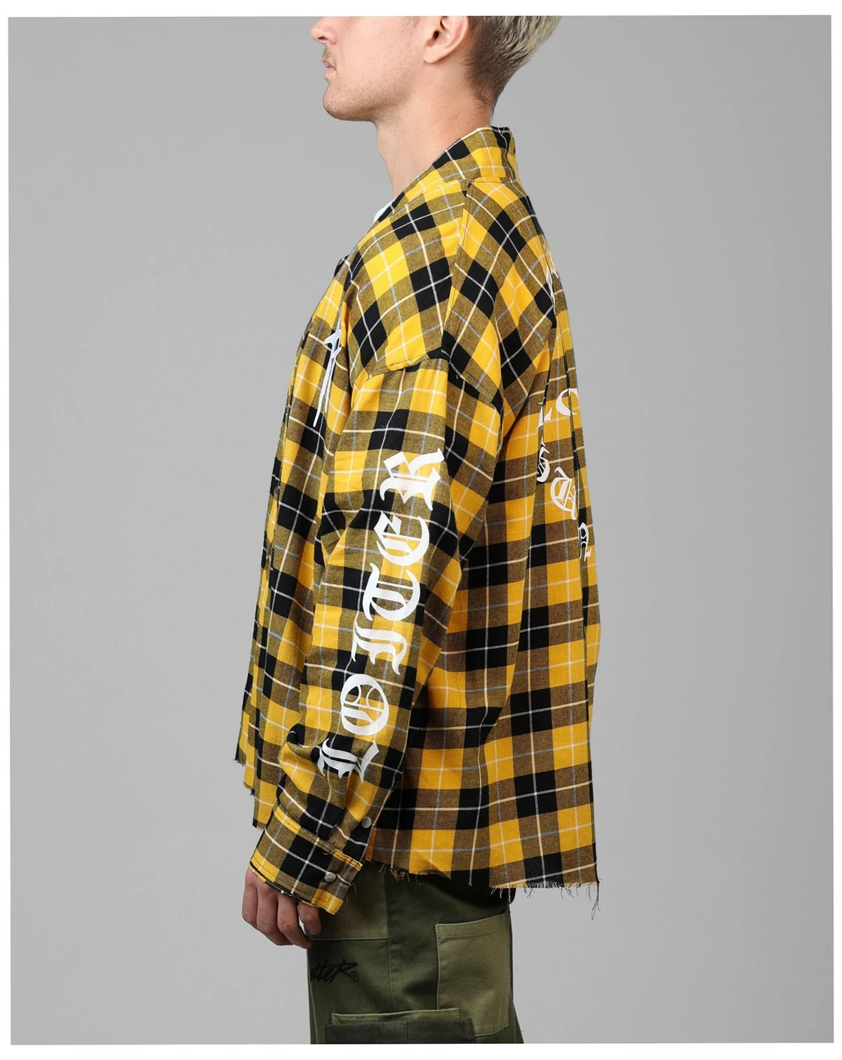 The kimono cut brings an oversized swagger to the look that is light and breezy with the flannel check keeping it casual. Featuring frayed hems, dropped shoulders, and a deep-cut V-neckline to complete the look.