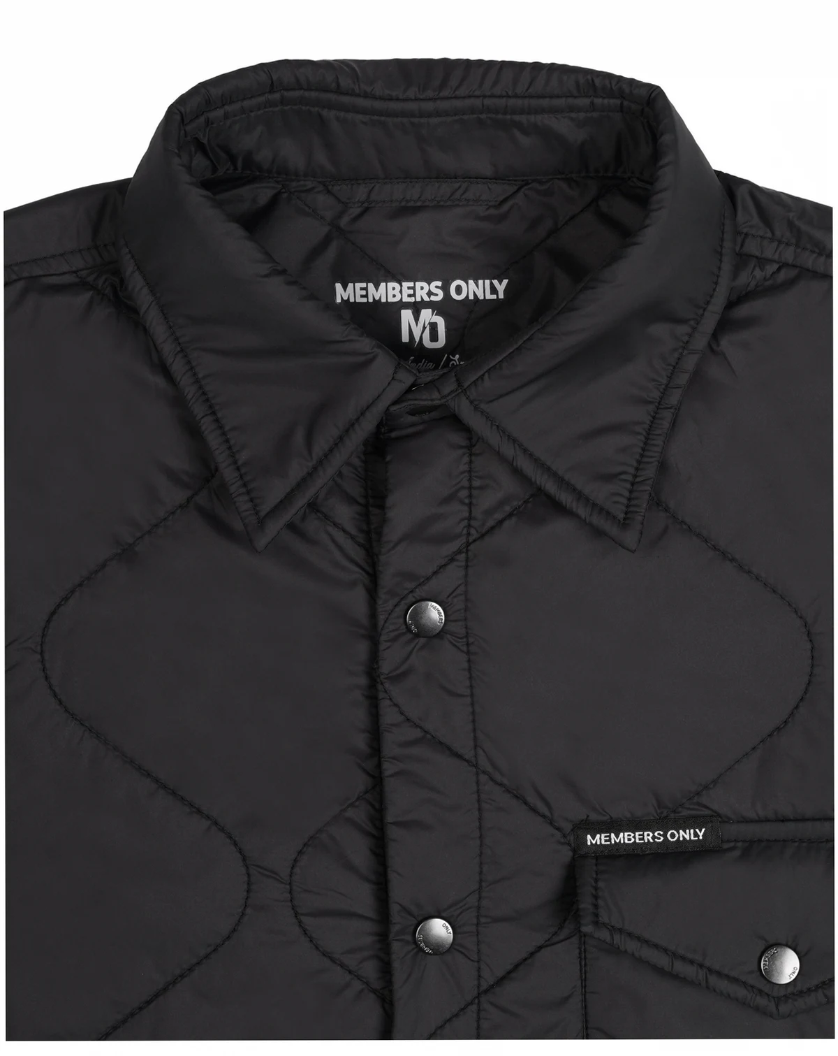 Front snap closure and spread collar, fully lined with polyester fill for lightweight warmth.; 100% Nylon; Nylon fabric with stylish onion/dumbbell quilting for a modern textured look.