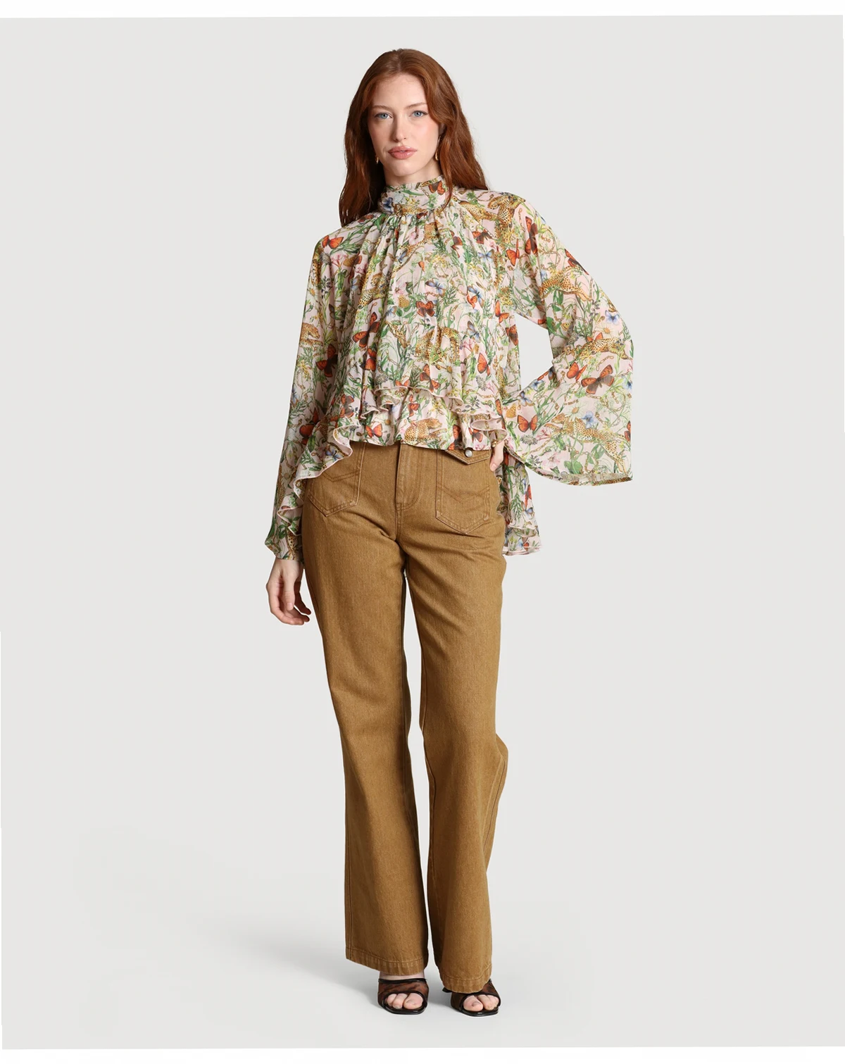 Turn heads in effortless elegance with this printed top by Avec Les Filles. The delicate tie detail at the neckline adds a touch of sophistication, while the lightweight fabric drapes beautifully for all-day comfort.