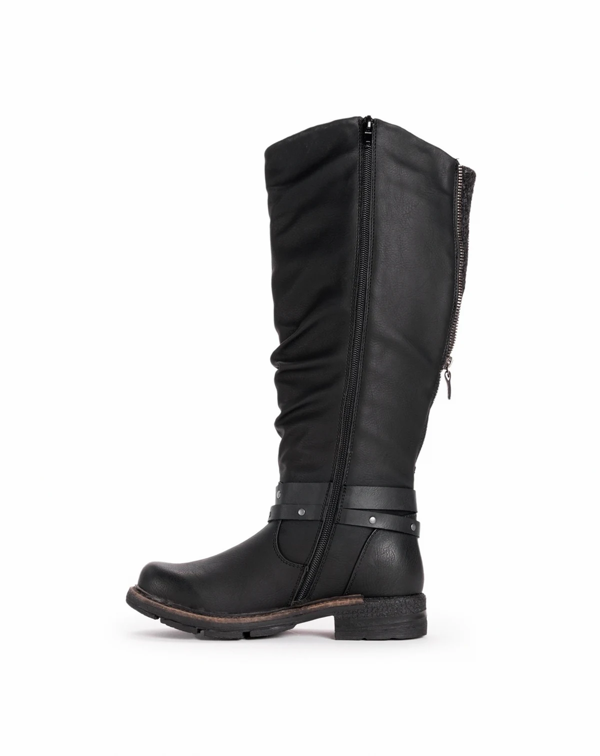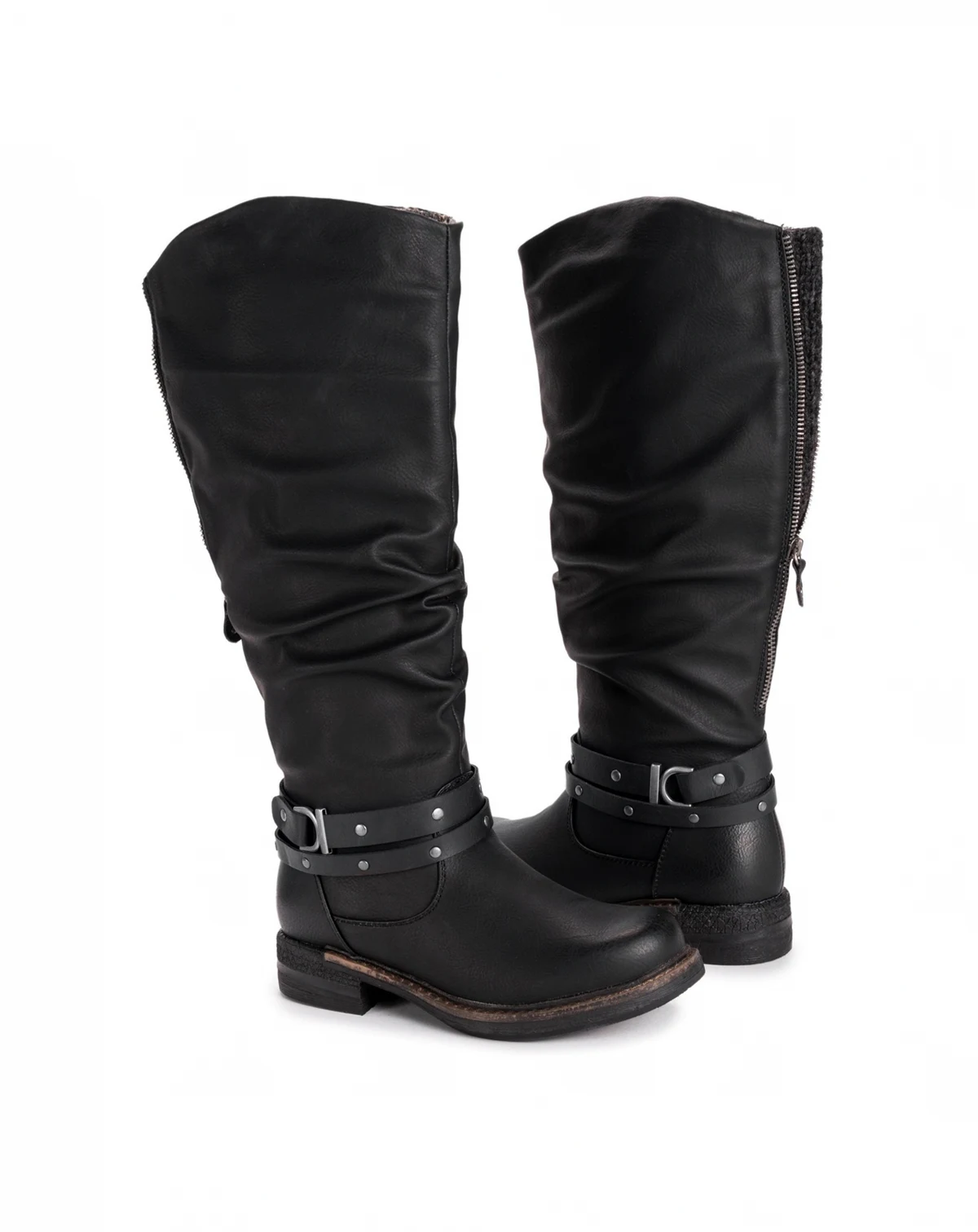 LUKEES by MUK LUKS Women's Logger Victoria Boots are the perfect fall weather stable. These tall water-resistant boots let you mix up your style with sweet knit accents and buckle detail. Imported. Shaft height is 12" and shaft circumference is 13".