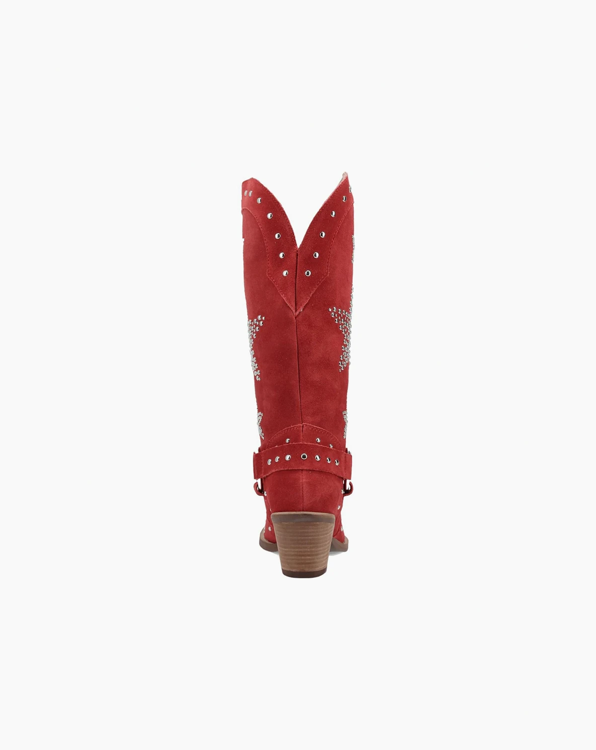 Step into your own kind of magic with the Lucky Stars boot. Featuring shimmering star accents and a bold harness wrap, this boot blends cosmic vibes with modern edge. It s the perfect statement piece for those ready to shine bright and take charge with undeniable style.